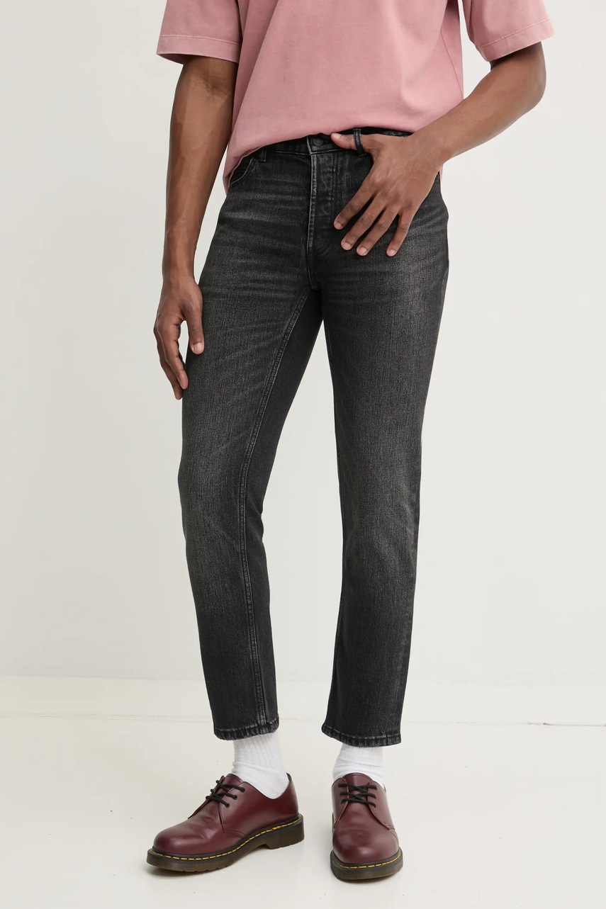 Blugi confecționați din fibre ecologice, utilizând metode de producție sustenabile pentru a minimiza impactul asupra mediului.