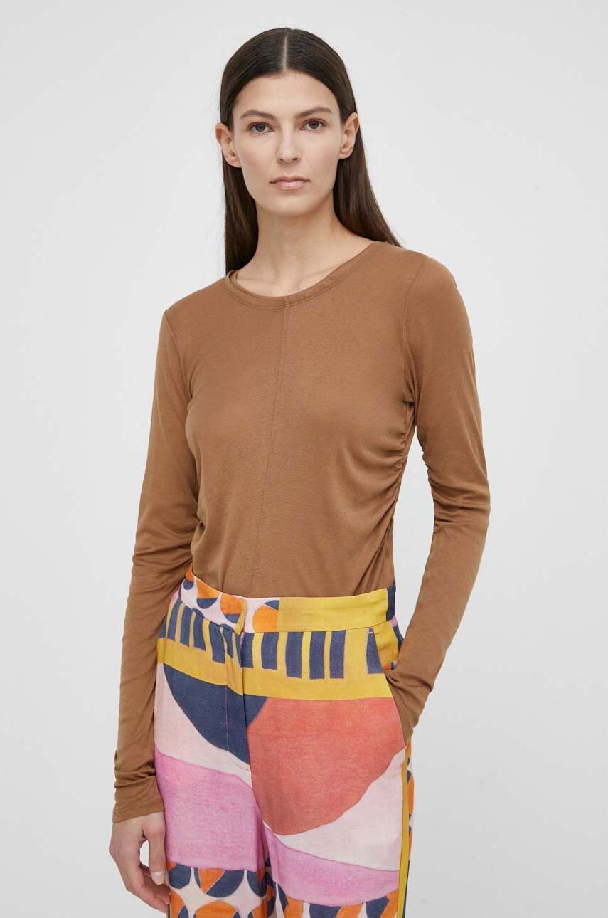 Acest model oferă o croială lejeră, ideală pentru mișcare liberă. Stilizată cu o linie lăsată a umerilor și având un guler de tip helancă, această bluză este perfectă pentru un look casual. Pe față se regăsește logo-ul mărcii brodat.
