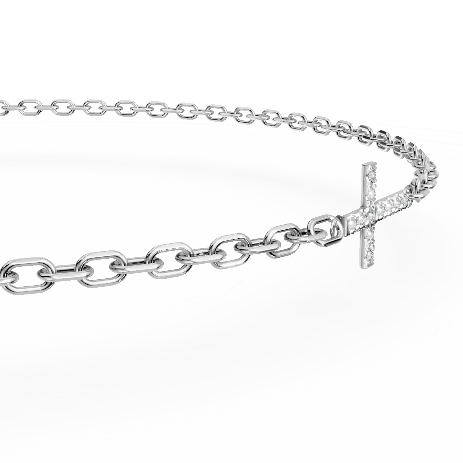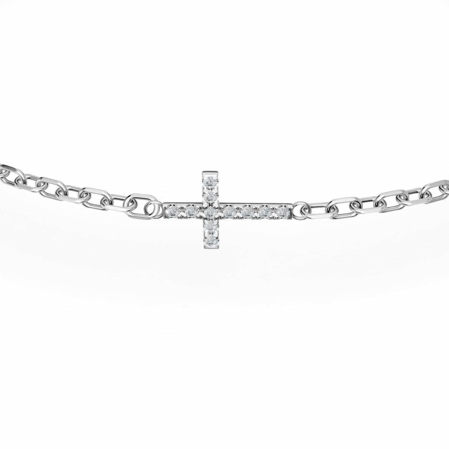 Descoperă eleganța bijuteriilor cu această brățară cu cruce din aur alb, împodobită cu diamante de 0.06ct. Designul său rafinat îmbracă delicat încheietura mâinii, oferindu-ți un stil memorabil.