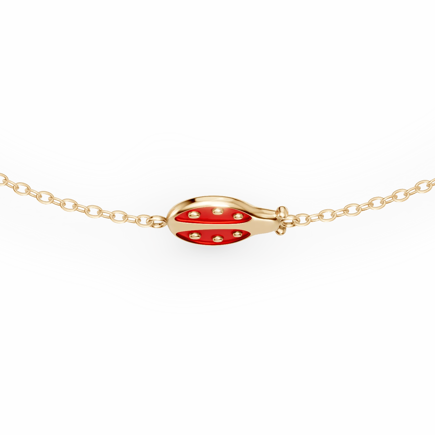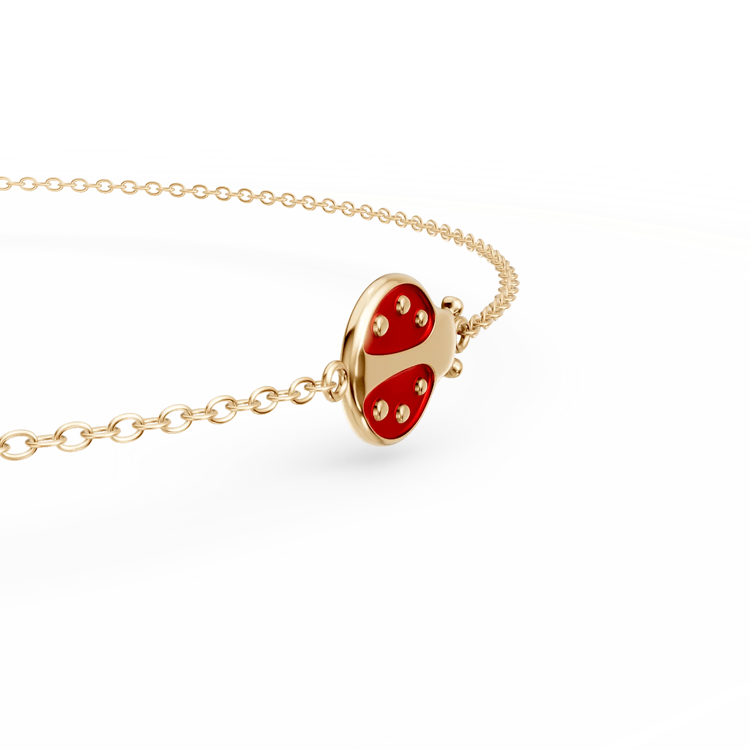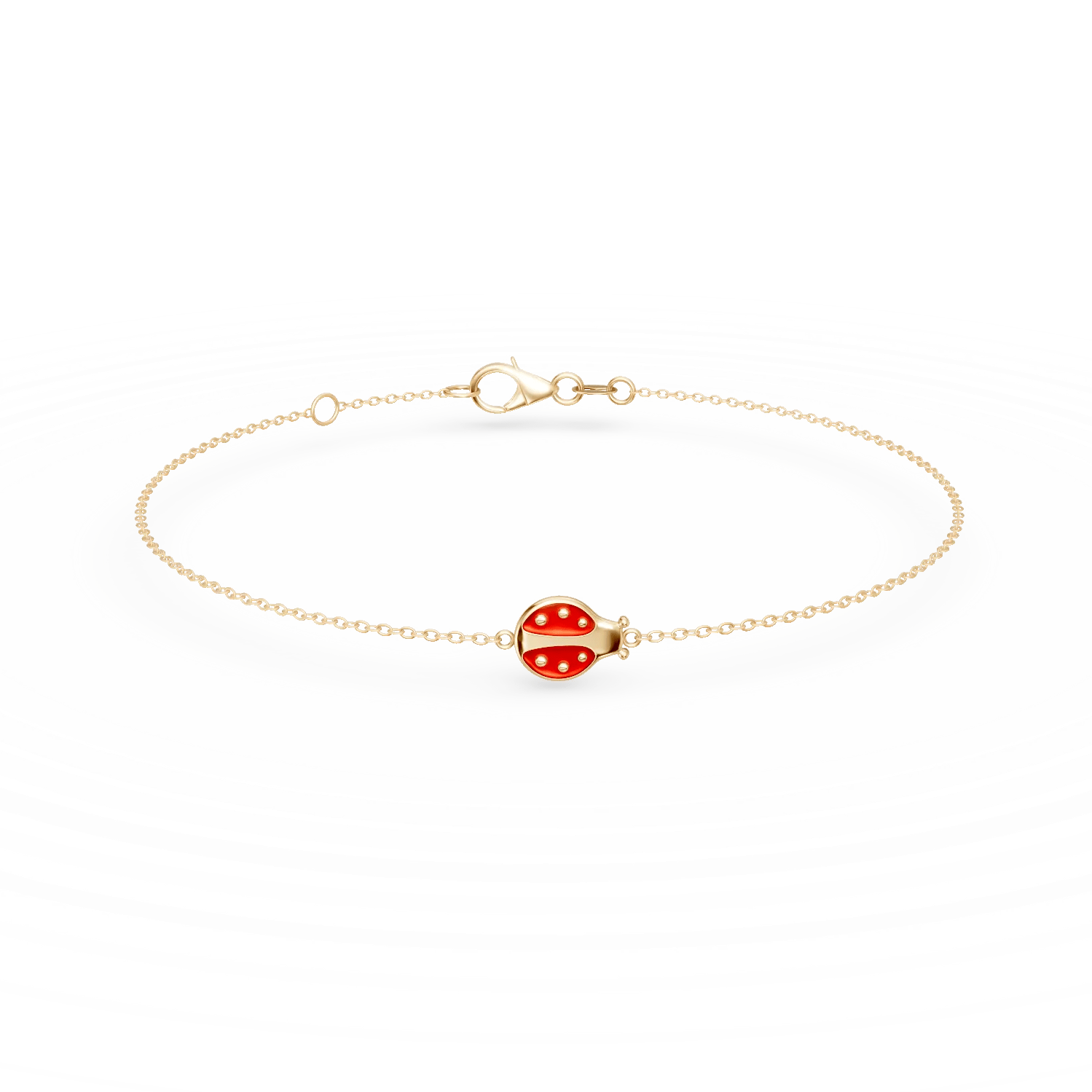 Primul accesoriu minunat pentru cei mici, brățara cu pandantiv buburuză din aur galben este ideală pentru a păstra amintirile copilăriei. Designul său delicat și plin de veselie o face un cadou special.
