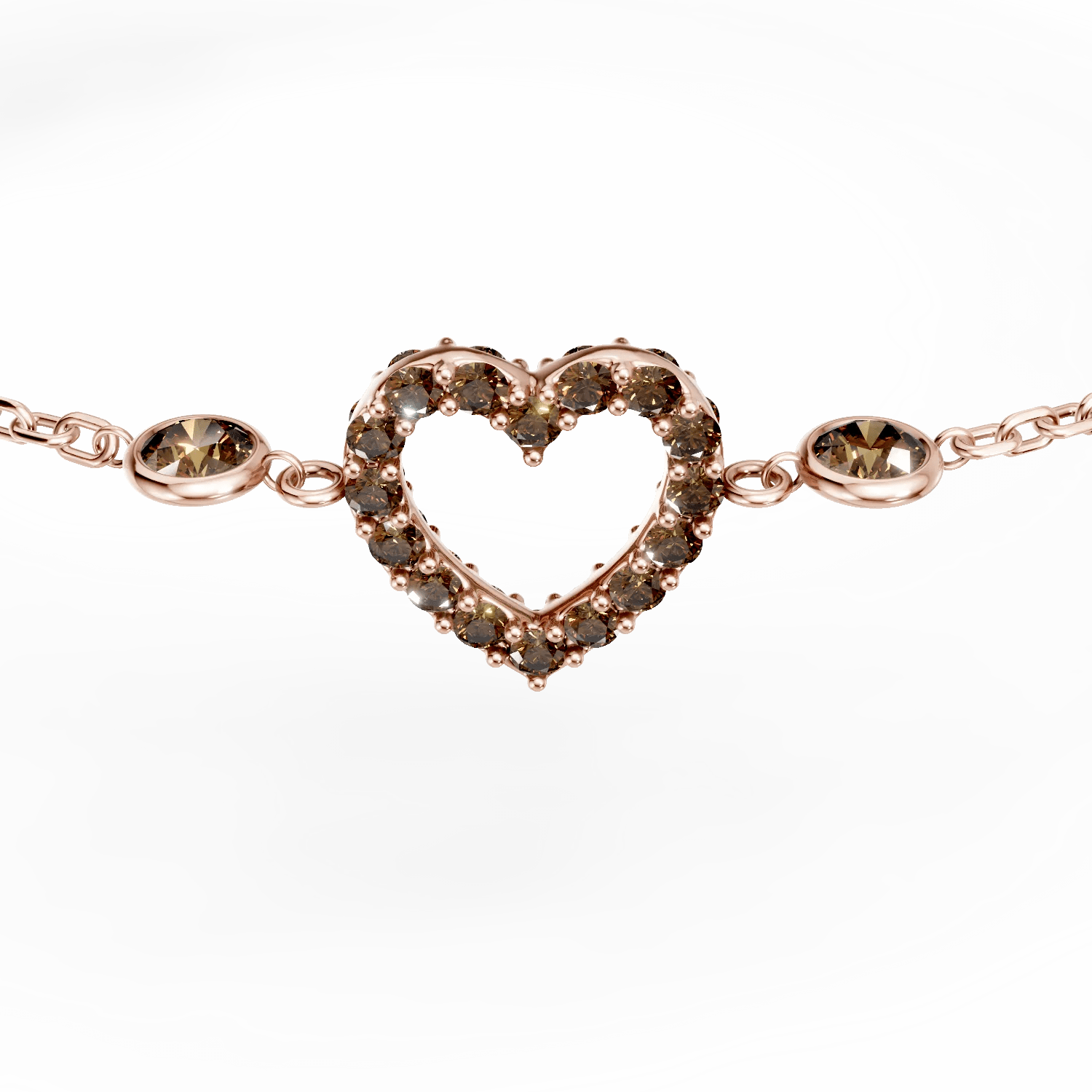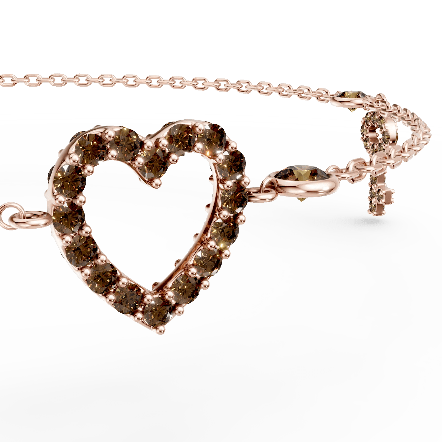 O combinație elegantă între aurul roz și zirconii maro, această brățară modernă este înfrumusețată cu pandantive în formă de inimă și cheie. Descoperă rafinamentul în fiecare detaliu.