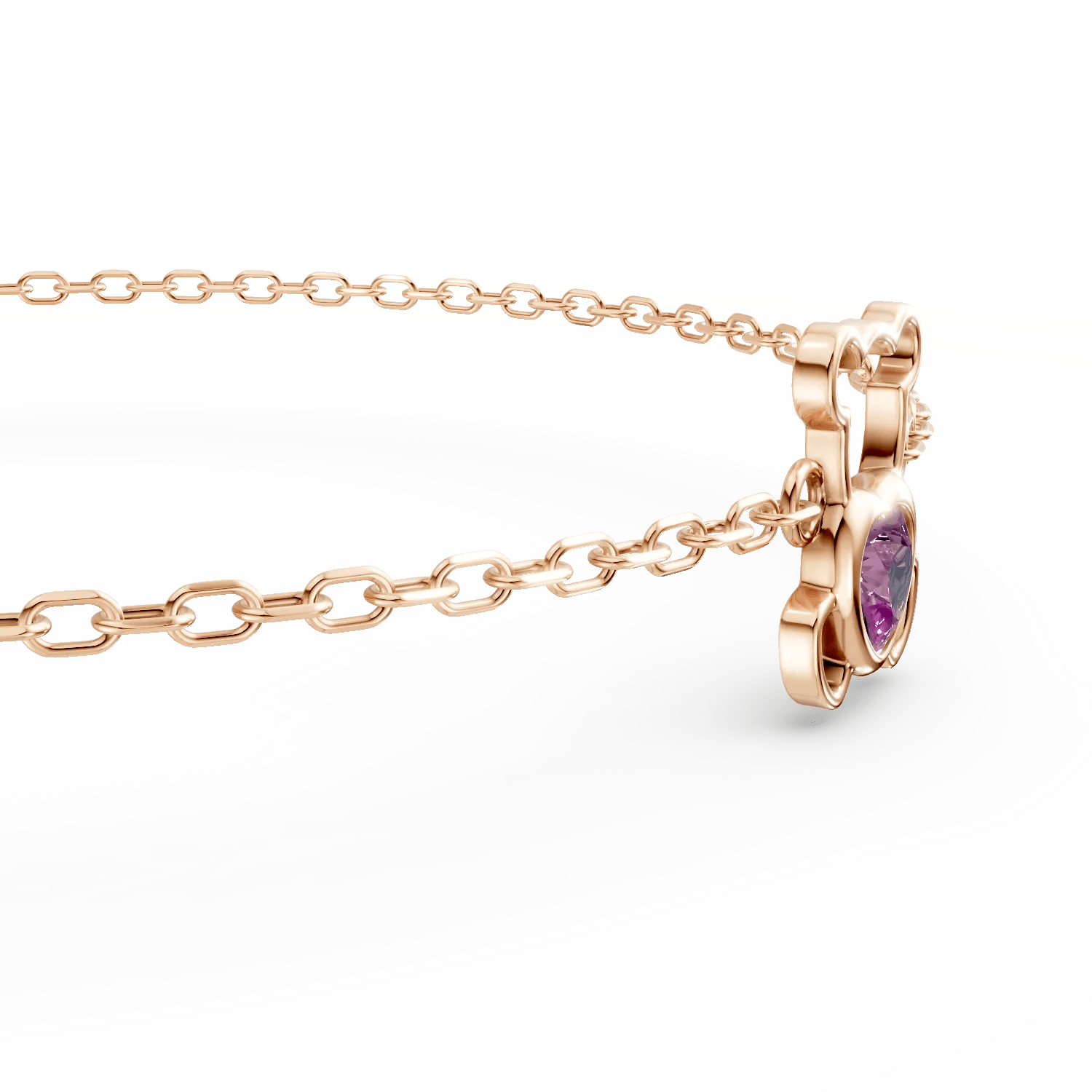 În lumea copilăriei, fiecare clipă poartă o poveste. Această brățară cu pandantiv ursuleț, realizată din aur roz și decorată cu un safir roz heart de 0.1ct, aduce un plus de magie și bucurie fiecărui moment. Nuantele delicate ale safirului completează frumos tonul cald al aurului, fiind un dar deosebit, destinat să păstreze amintiri prețioase și să inspire zâmbete.