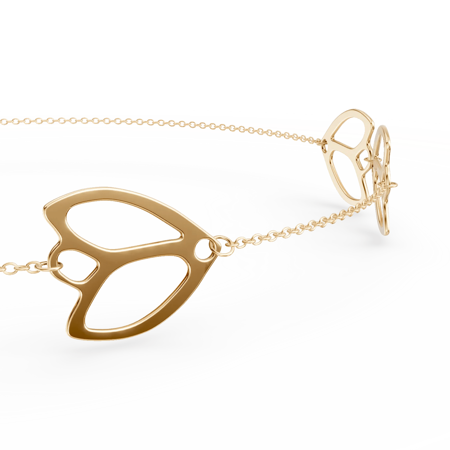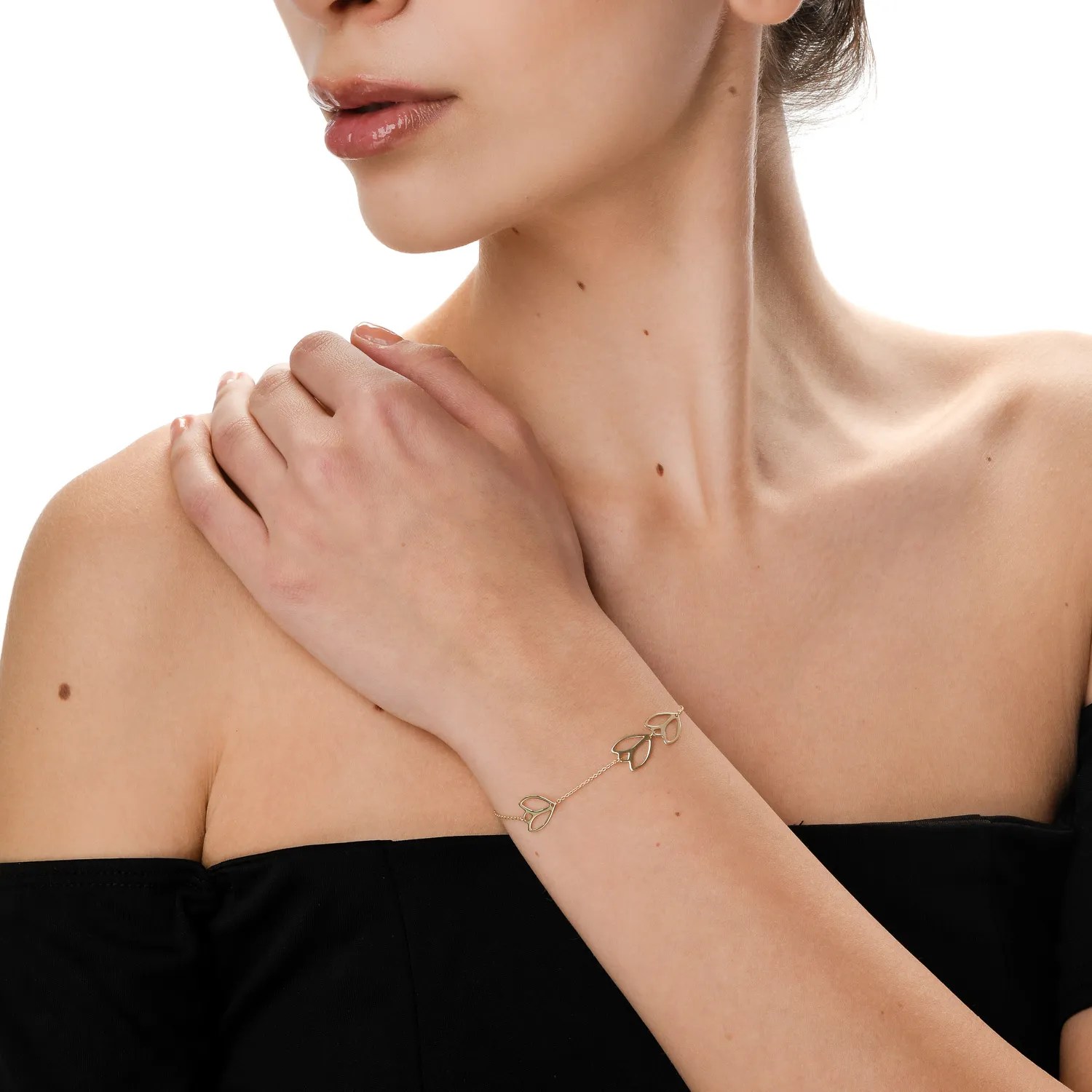 Brățara cu pandantive în formă de floare din aur galben adaugă o notă elegantă și distinctivă stilului tău. Concepută cu atenție la detalii, această piesă inspiră prin armonia formelor sale. TEILOR – aflată în slujba caracterului puternic.
