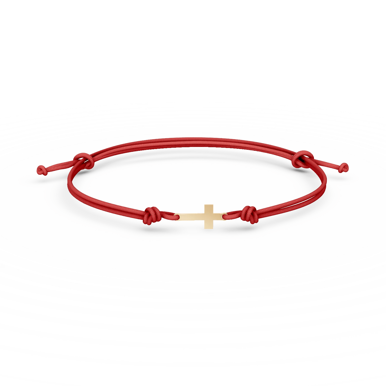 Bijuteriile din aur sunt mereu o opțiune excelentă. Această brățară cu șnur și pandantiv cruciuliţă din aur galben oferă un design clasic și detalii subtile, perfectă pentru a emana încredere. Descoperă-ți stilul cu TEILOR.