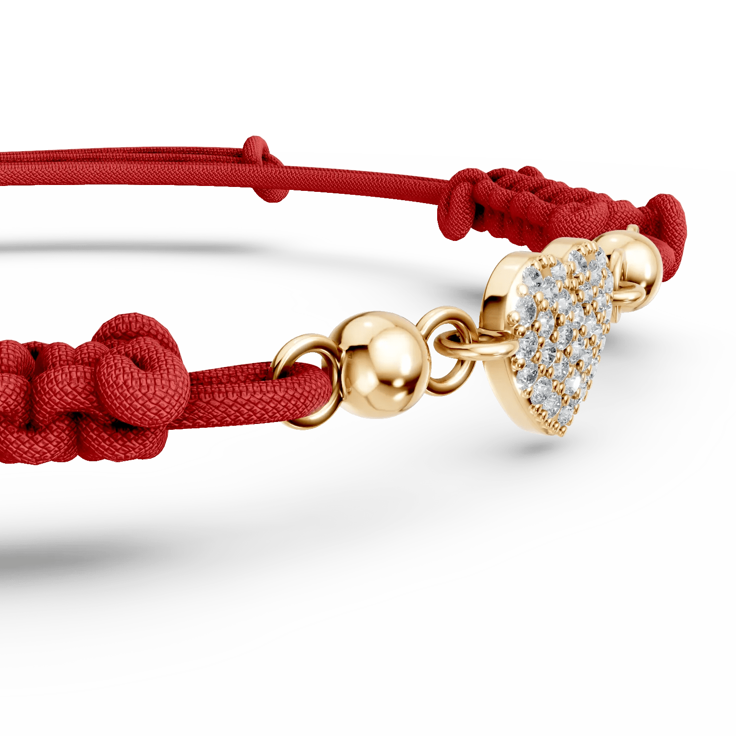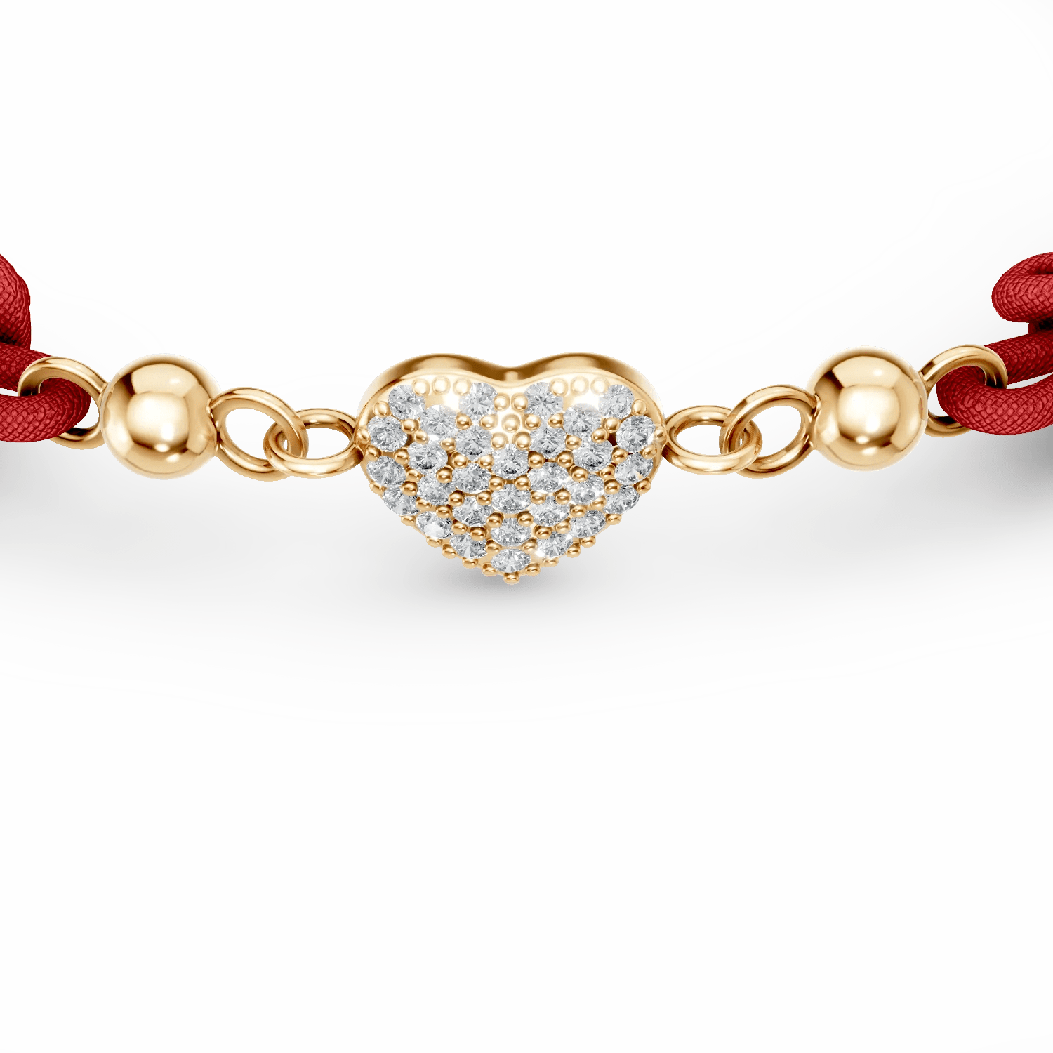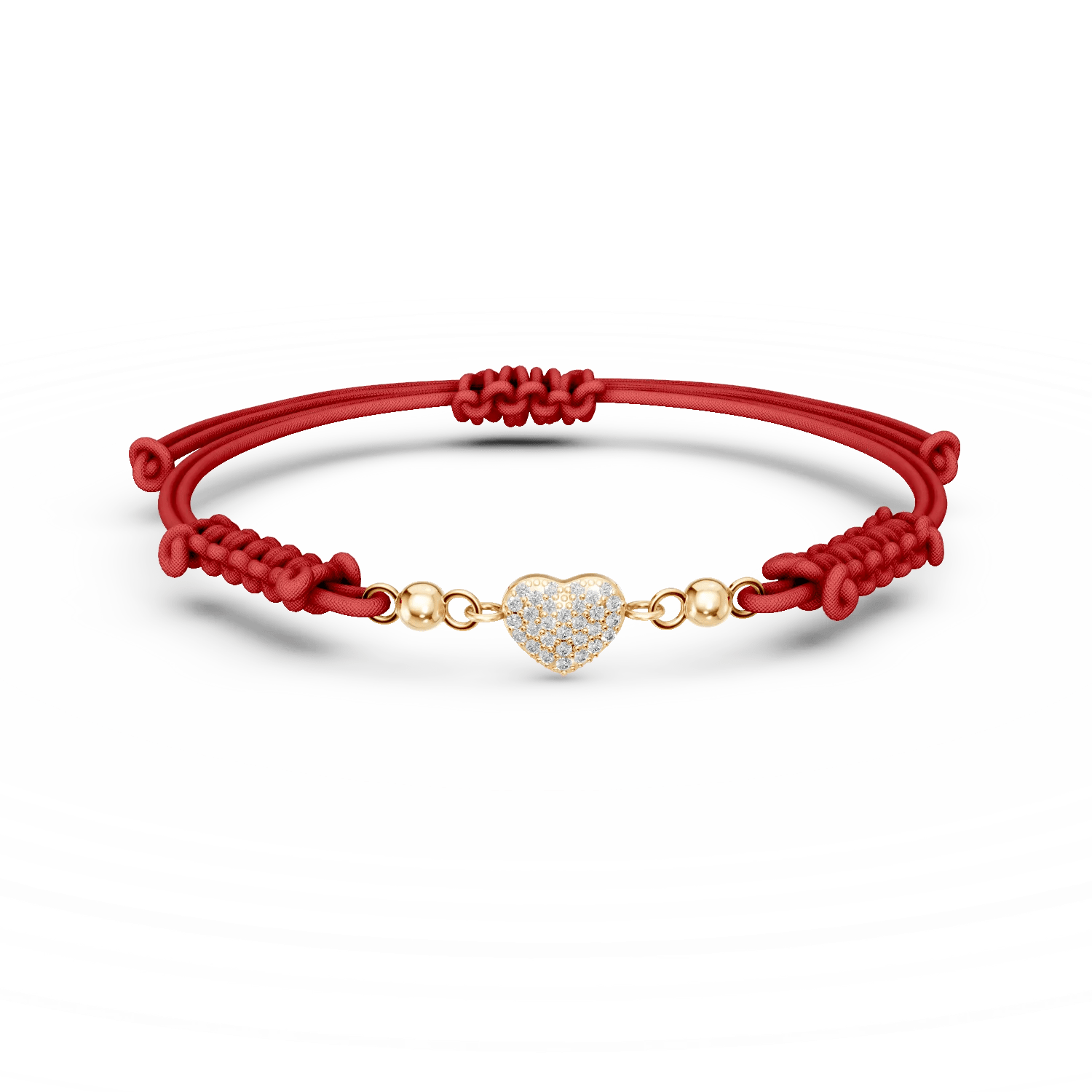 Descoperă eleganța unei brățări cu șnur și pandantiv în formă de inimă, realizată din aur galben vibrant și înfrumusețată cu zirconii strălucitoare. Această combinație de nuanțe și forme creează o bijuterie rafinată, perfectă pentru a te reprezenta.