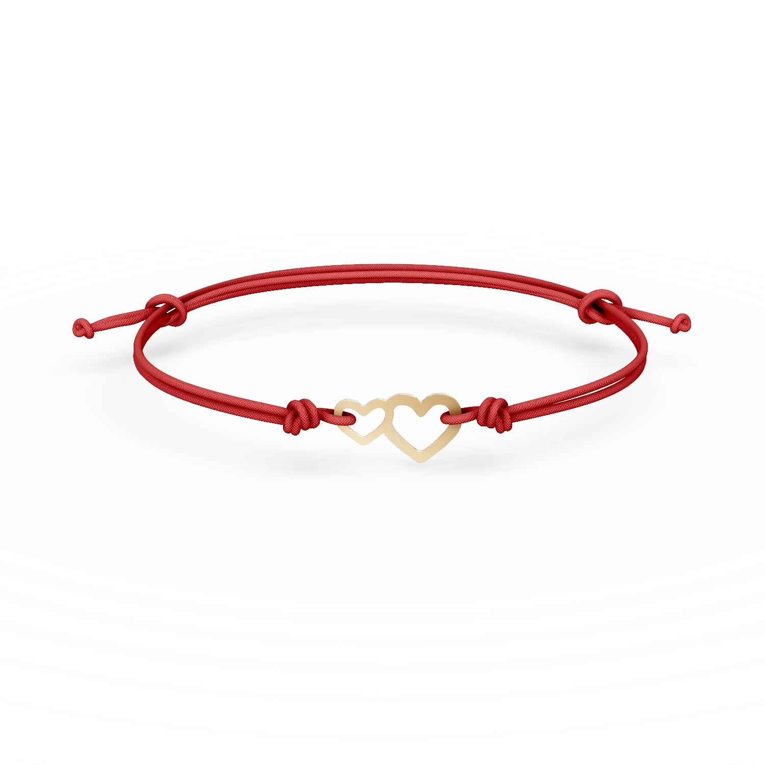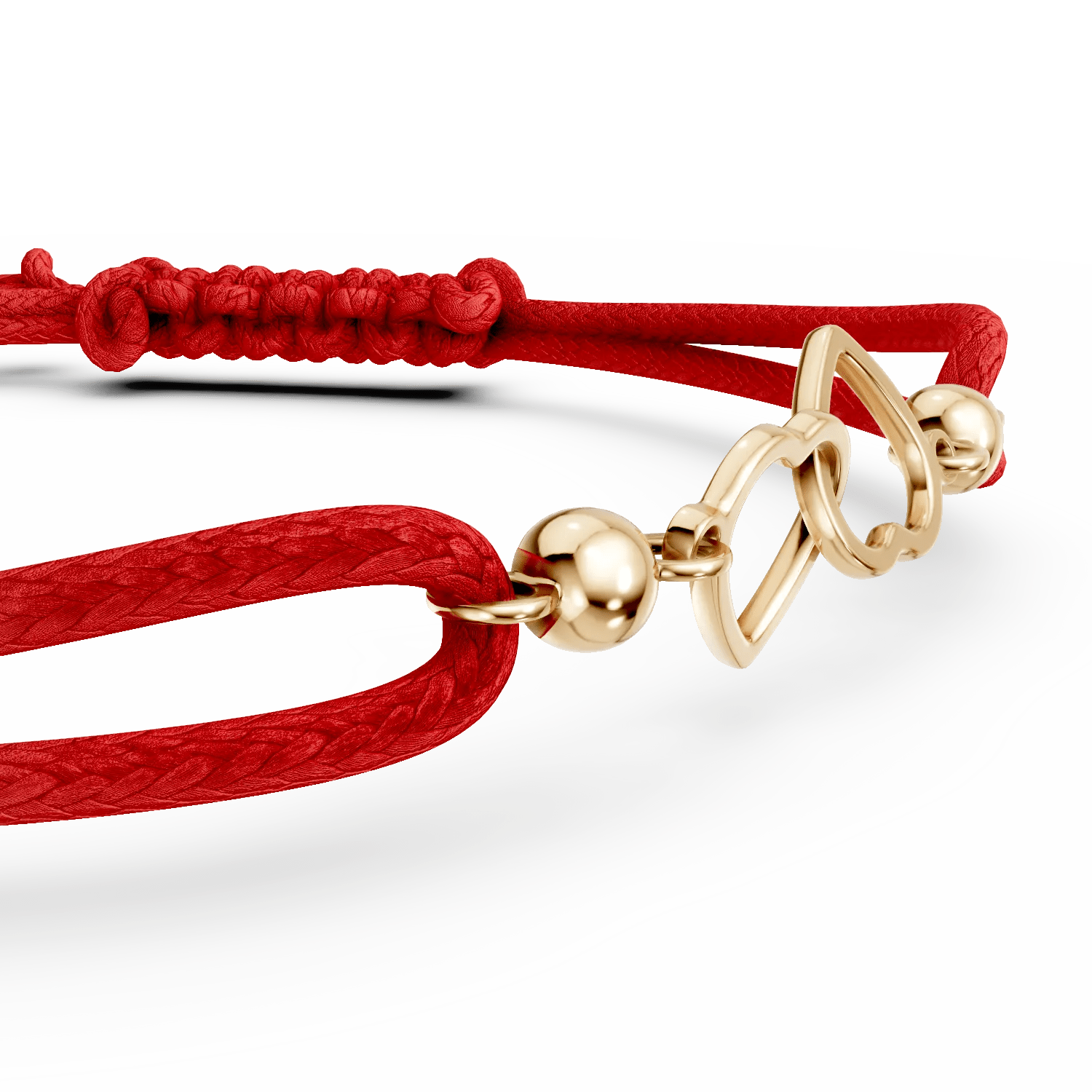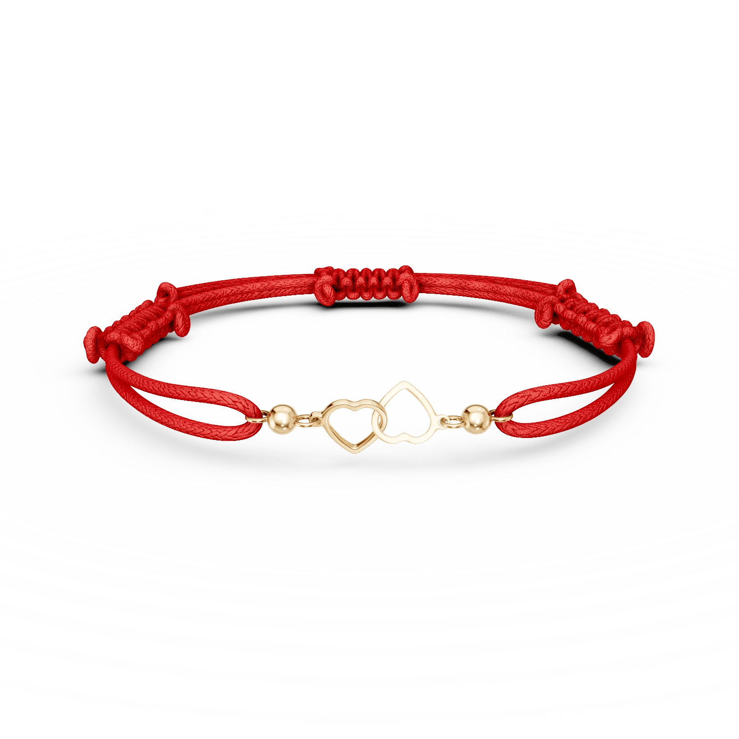 Acest accesoriu îndrăzneț cu pandantiv inimioare din aur galben și șnur adaugă un farmec aparte oricărei ținute. Bijuteria reflectă strălucirea și personalitatea ta unică.