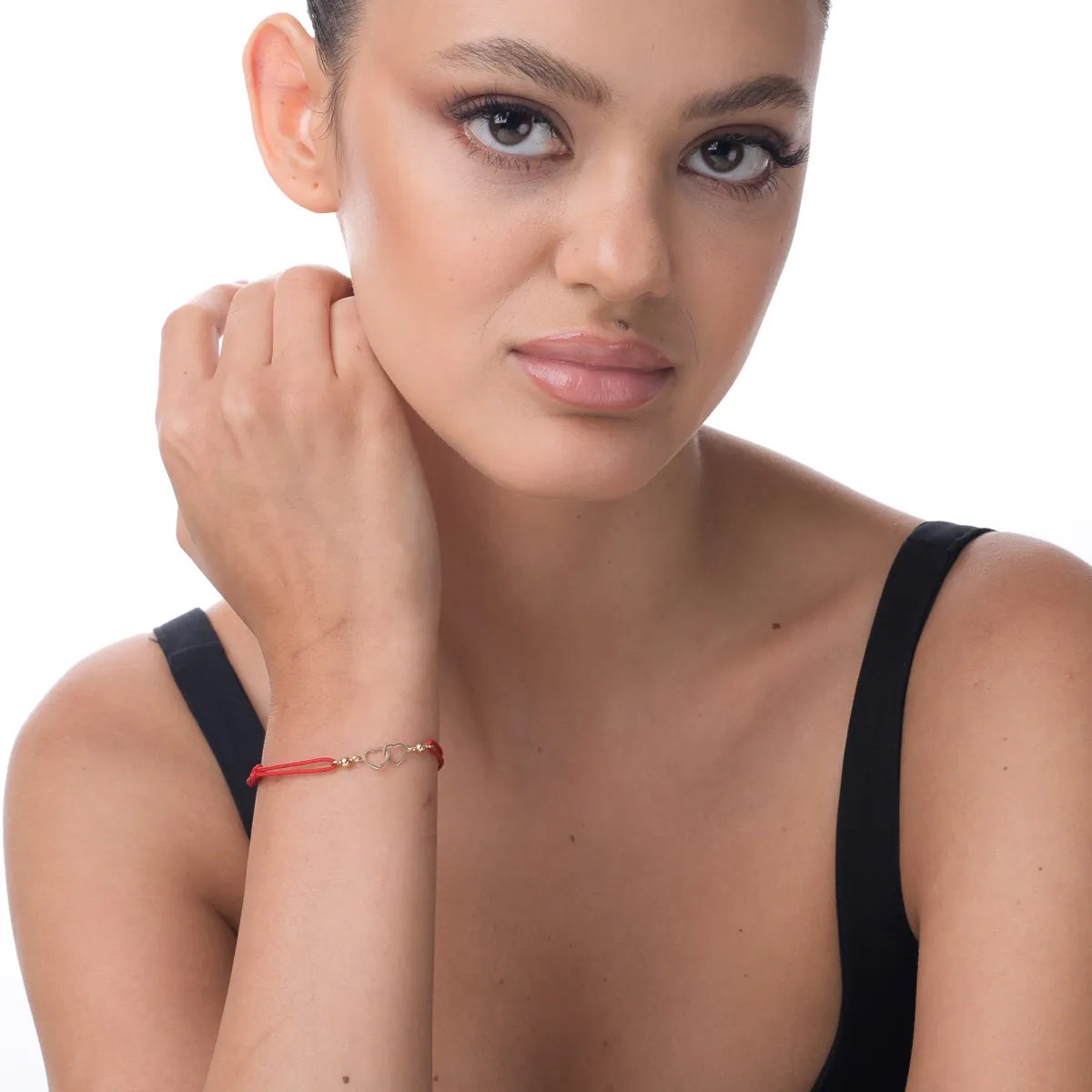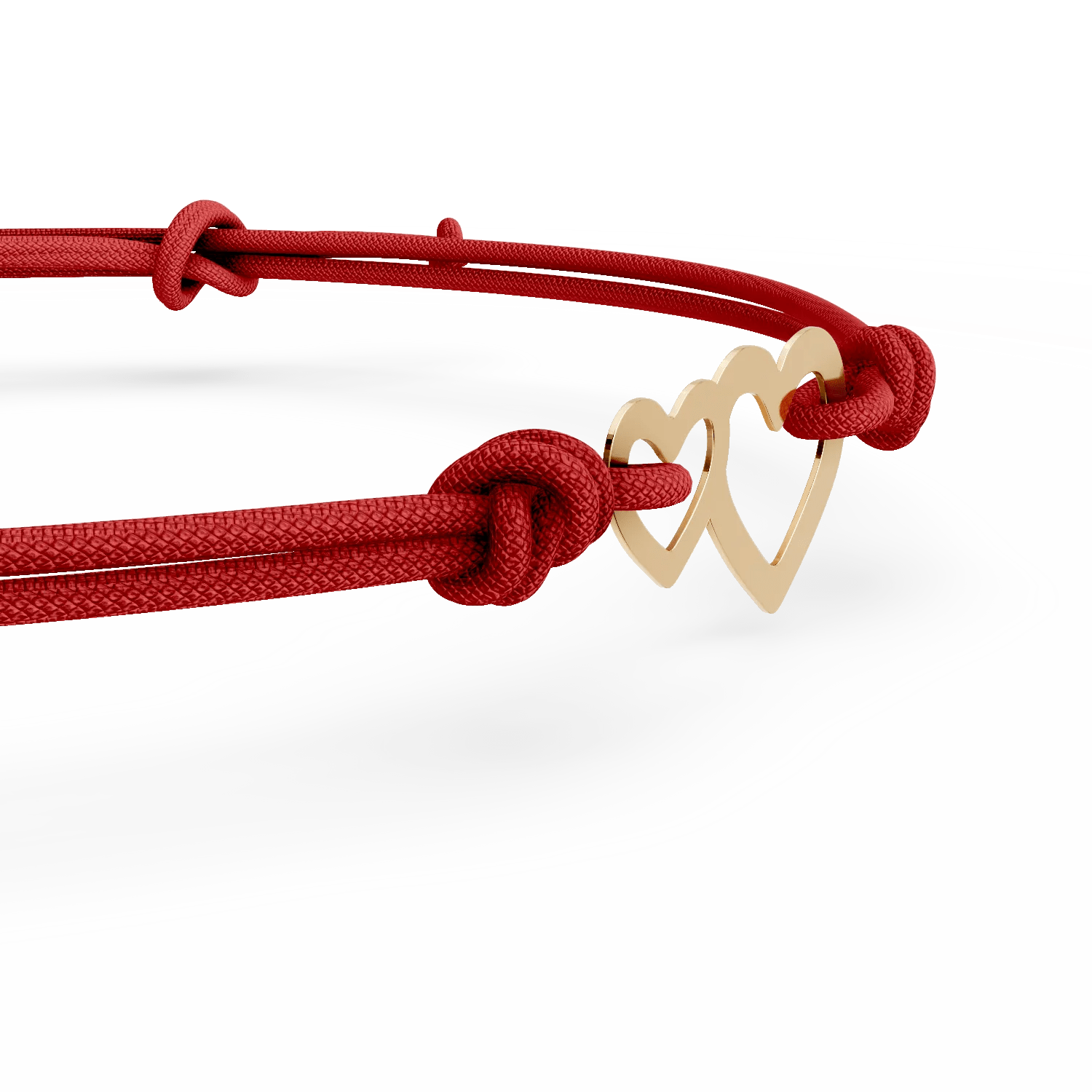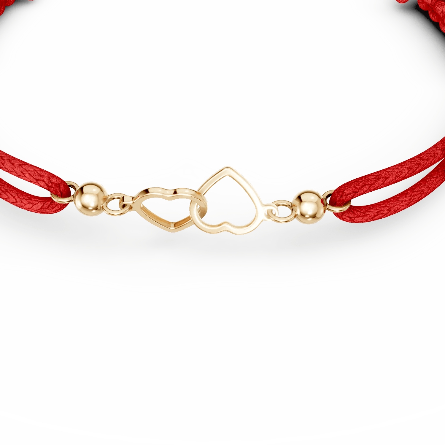 Acest accesoriu îndrăzneț cu pandantiv inimioare din aur galben și șnur adaugă un farmec aparte oricărei ținute. Bijuteria reflectă strălucirea și personalitatea ta unică.