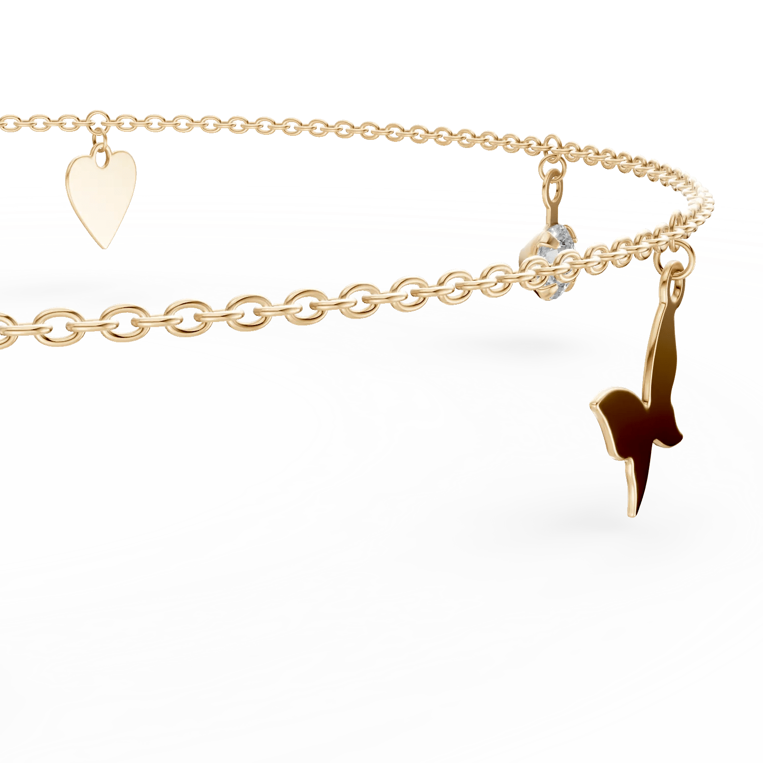 Adaugă un plus de eleganță ținutei tale de zi cu zi cu această brățară de gleznă din aur galben decorată cu zirconii. Designul său fluid oferă un aspect rafinat, emblematic TEILOR.