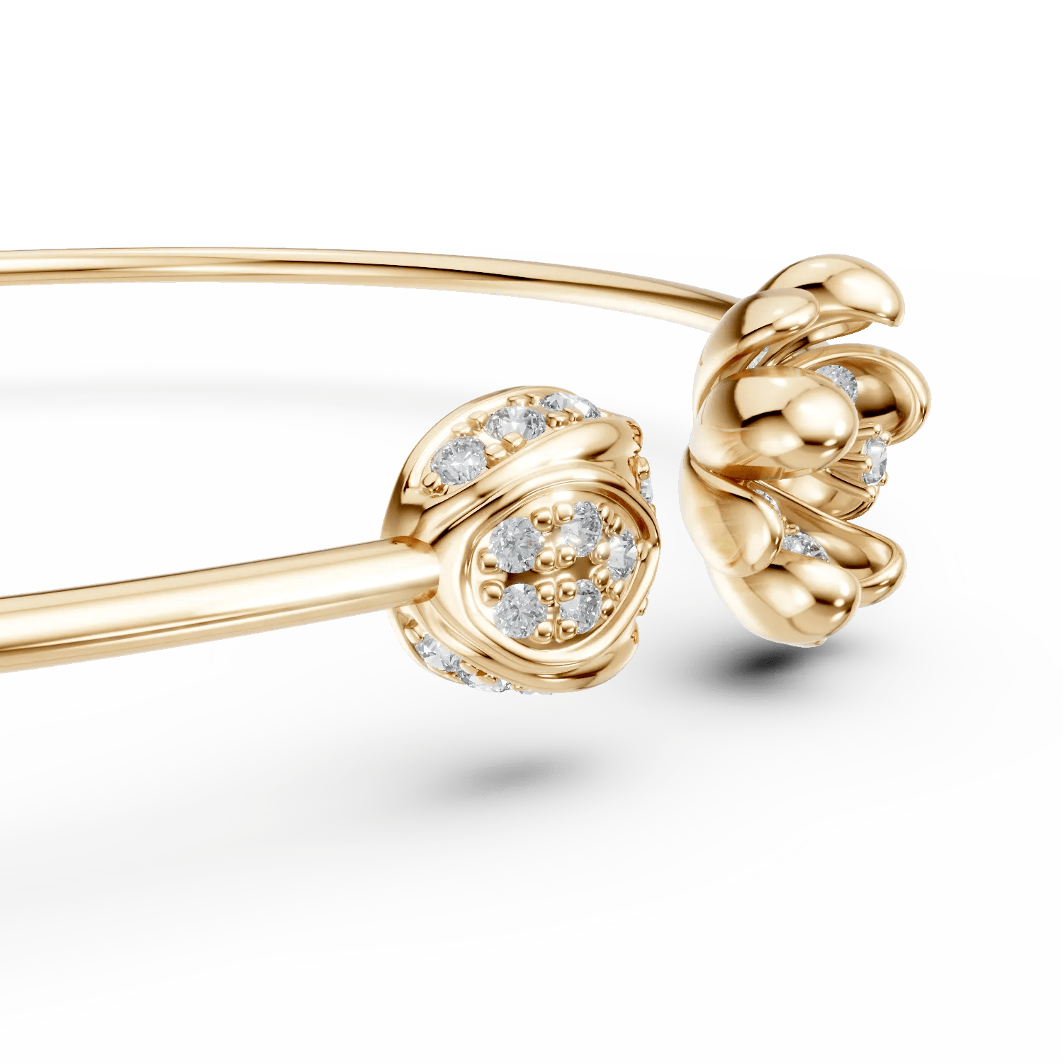 Colecția Simplicity reinterpretează frumusețea naturii prin bijuterii unice. Această brățară deschisă, cu flori de tei din aur galben și diamante de 0.1ct, surprinde delicatețea și feminitatea într-un mod misterios și senzorial.