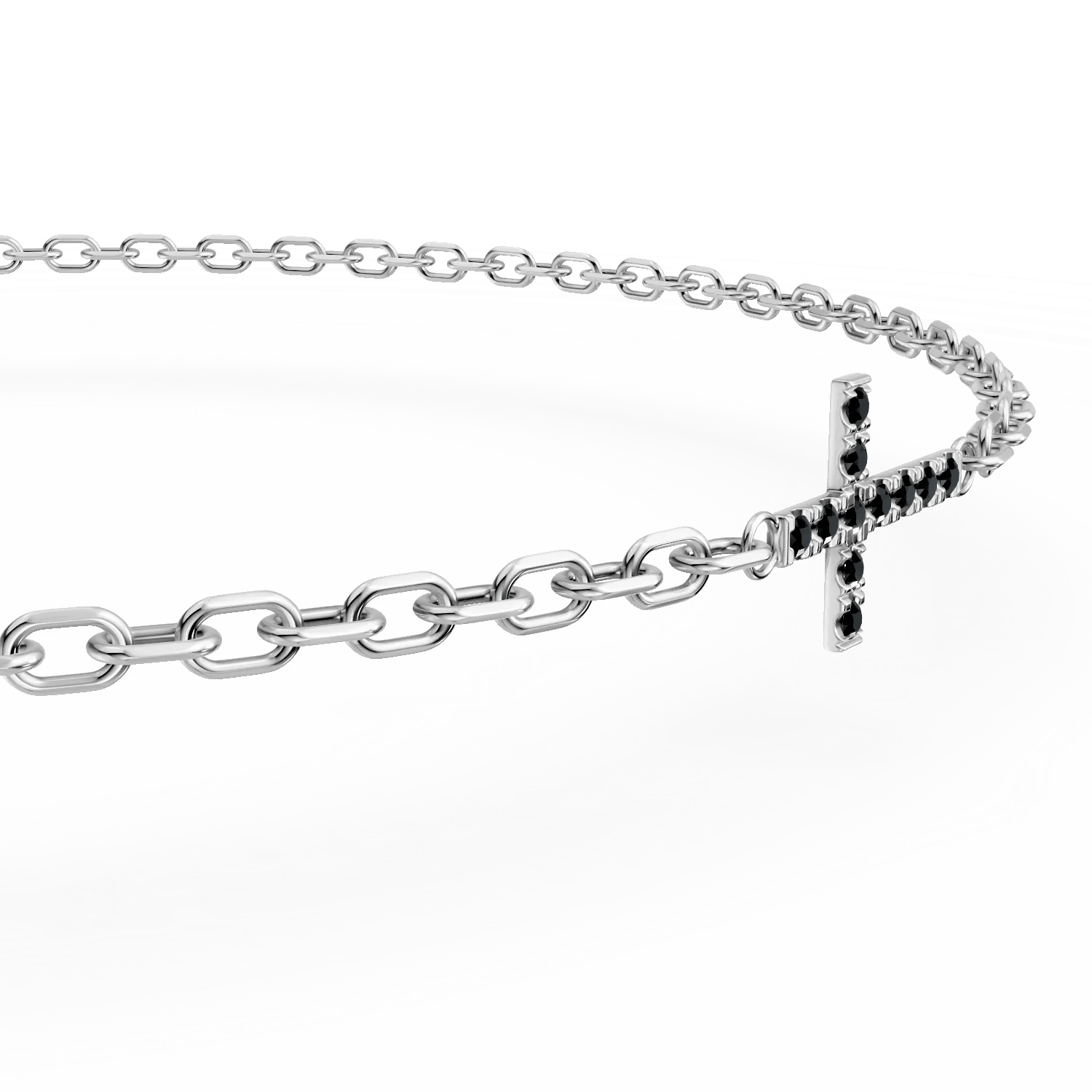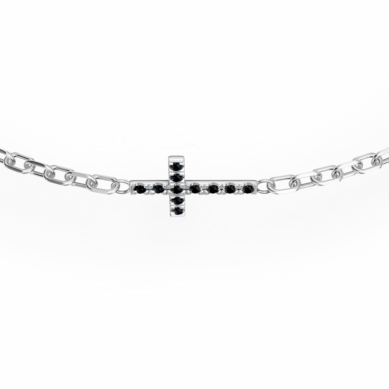 Alege o brățară din aur alb cu cruce, înnobilată cu diamante negre de 0.06ct, un simbol al rafinamentului contemporan. Contrastul dintre aur și diamantele negre adaugă un plus de eleganță și stil personal. Potrivită pentru orice ținută, această bijuterie subtilă și cu caracter devine indispensabilă pentru femeia care apreciază detaliile unice.