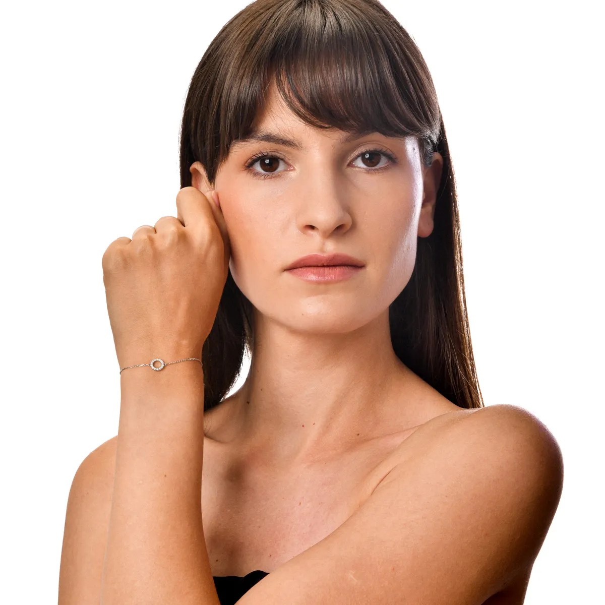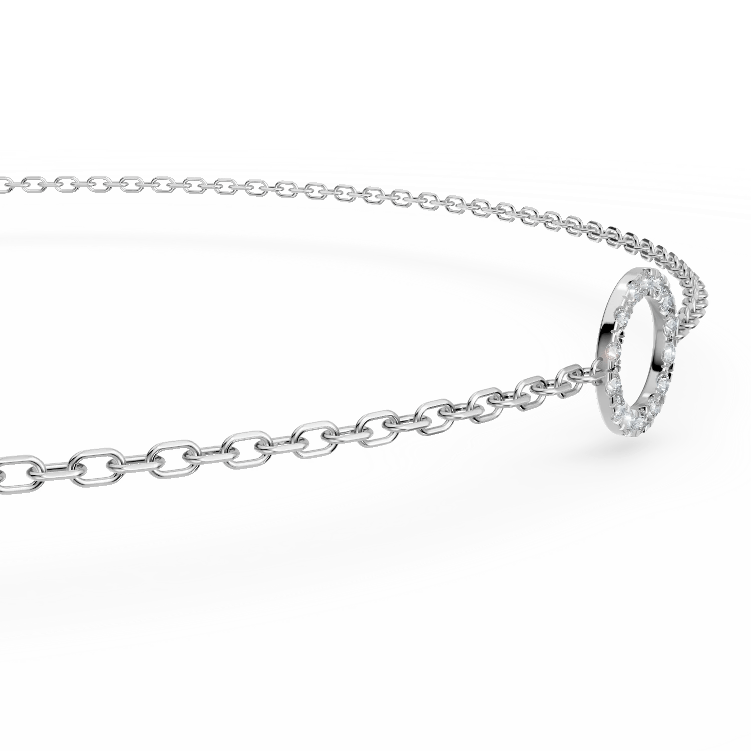 Explorează o bijuterie deosebită, unde aurul alb și pandantivul cerc cu diamante de 0.1ct se îmbină cu rafinament. Această brățară reflectă eleganță și feminitate, fiecare diamant captând lumina cu subtilitate. Ideală pentru femeile care își doresc să-și exprime stilul cu finețe.