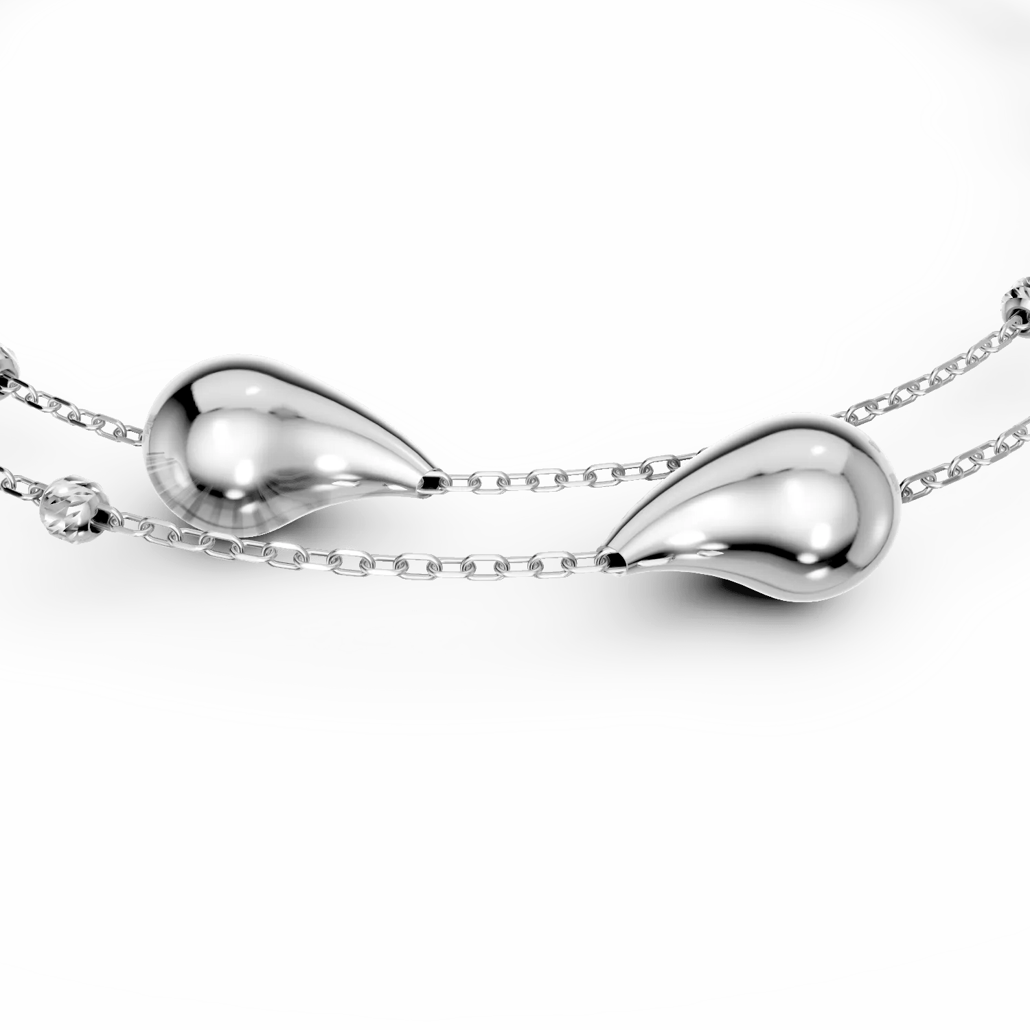 Această brățară din aur alb este caracterizată de rafinament minimalist și pandantive elegante în formă de lacrimă. Finisajele delicate evidențiază strălucirea sofisticată a aurului alb, oferind un aspect modern și discret. Ideală pentru purtarea zilnică sau ocazii speciale, această bijuterie completează perfect orice ținută cu un stil rafinat și echilibrat.