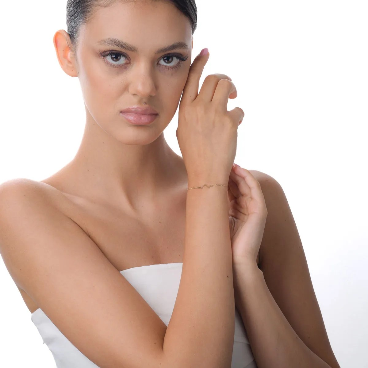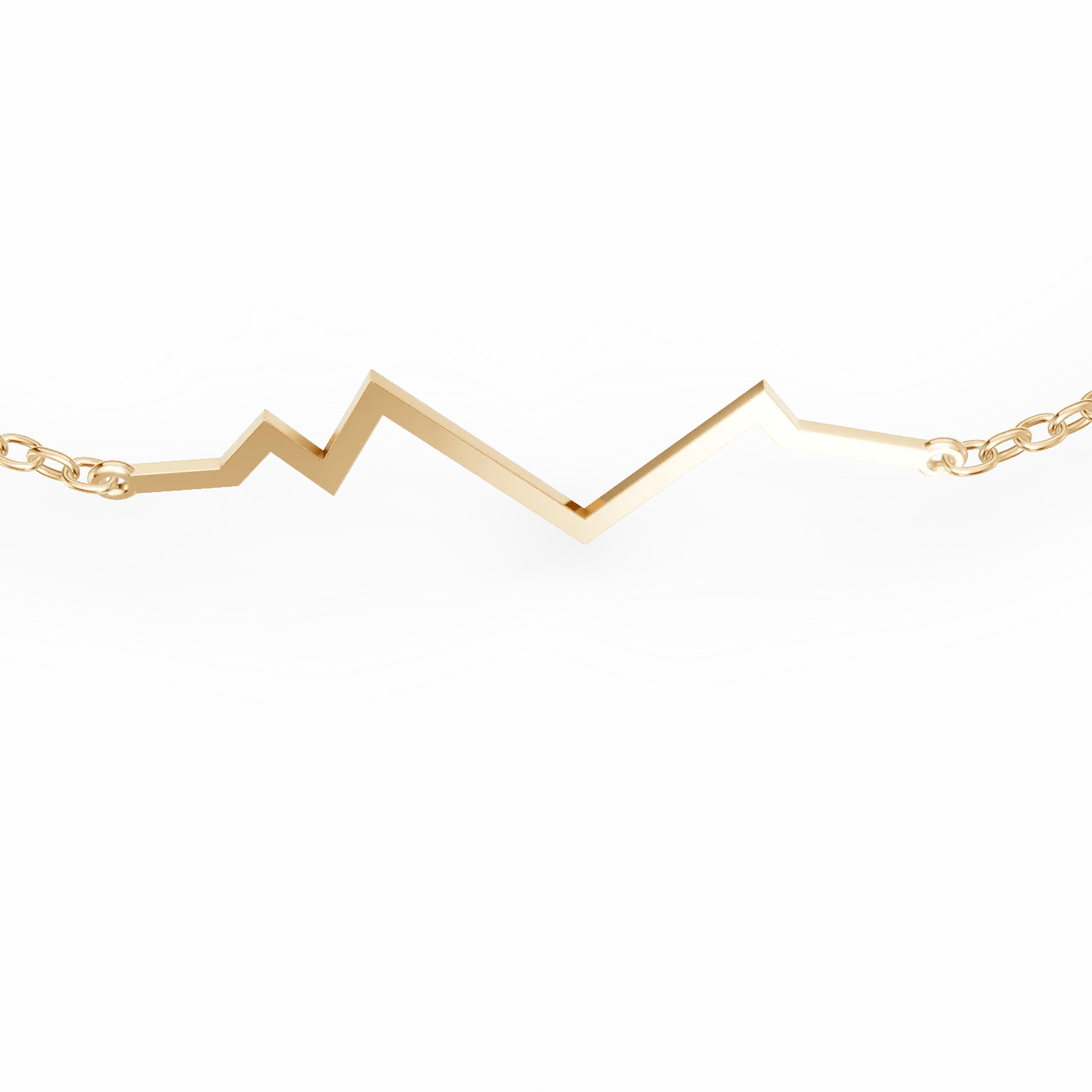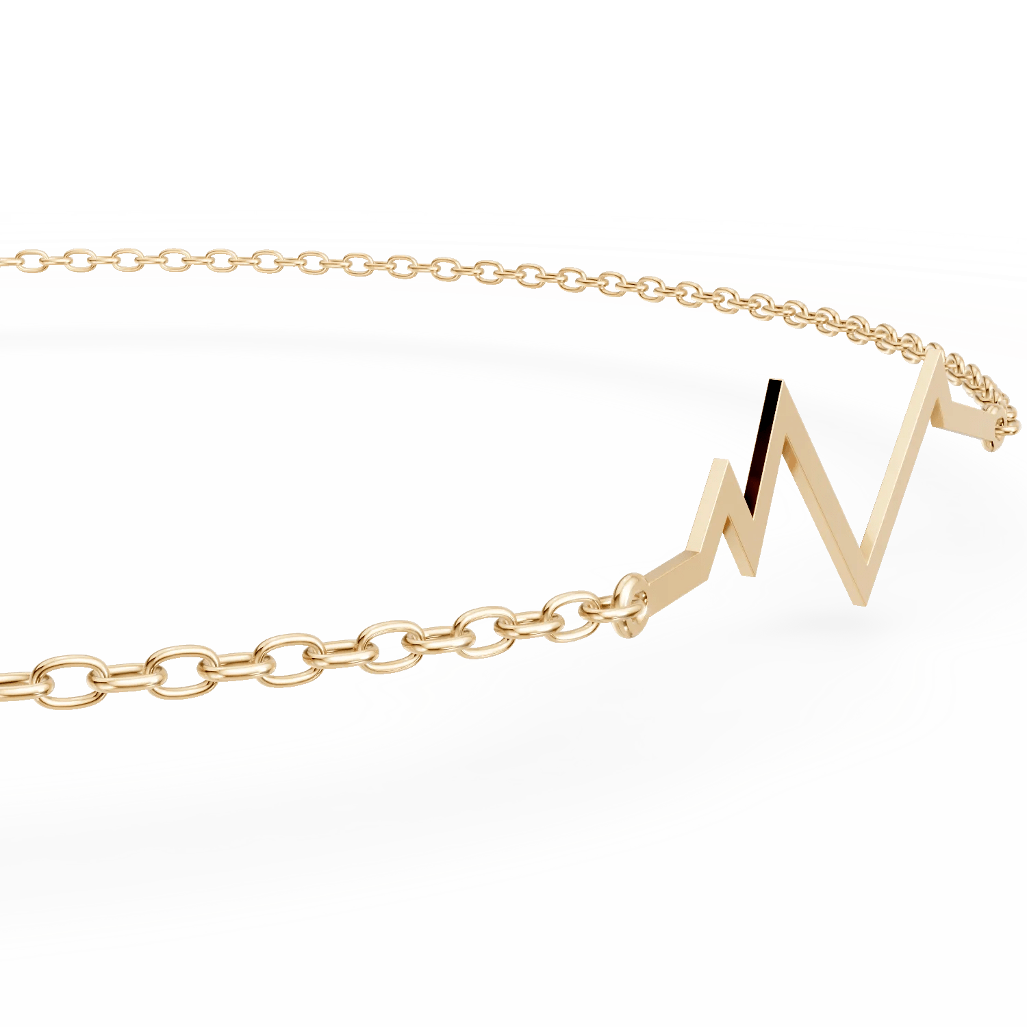 Acest accesoriu elegant este confecționat din aur galben și include un pandantiv subtil sub forma pulsului inimii. O alegere fermecătoare pentru a-ți decora încheietura și a începe o nouă etapă alături de TEILOR.