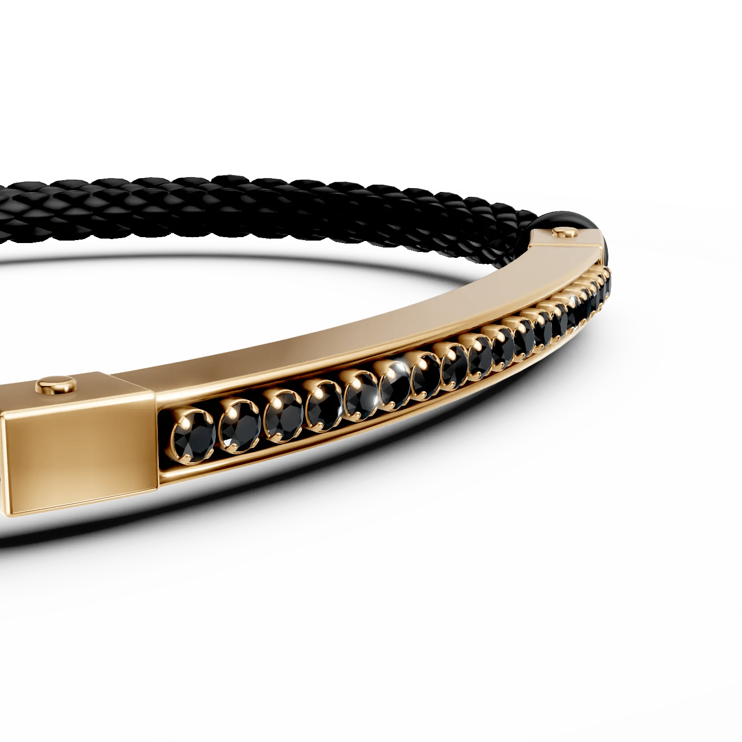 Acest accesoriu îmbină stilul modern cu eleganța discretă, fiind realizat din aur galben și piele neagră. Segmentul central din aur, decorat cu zirconii negre, creează un contrast puternic și atrăgător. Este o alegere versatilă, potrivită atât pentru ținute casual, cât și pentru ocazii speciale. Descoperă stilul masculin la TEILOR!
