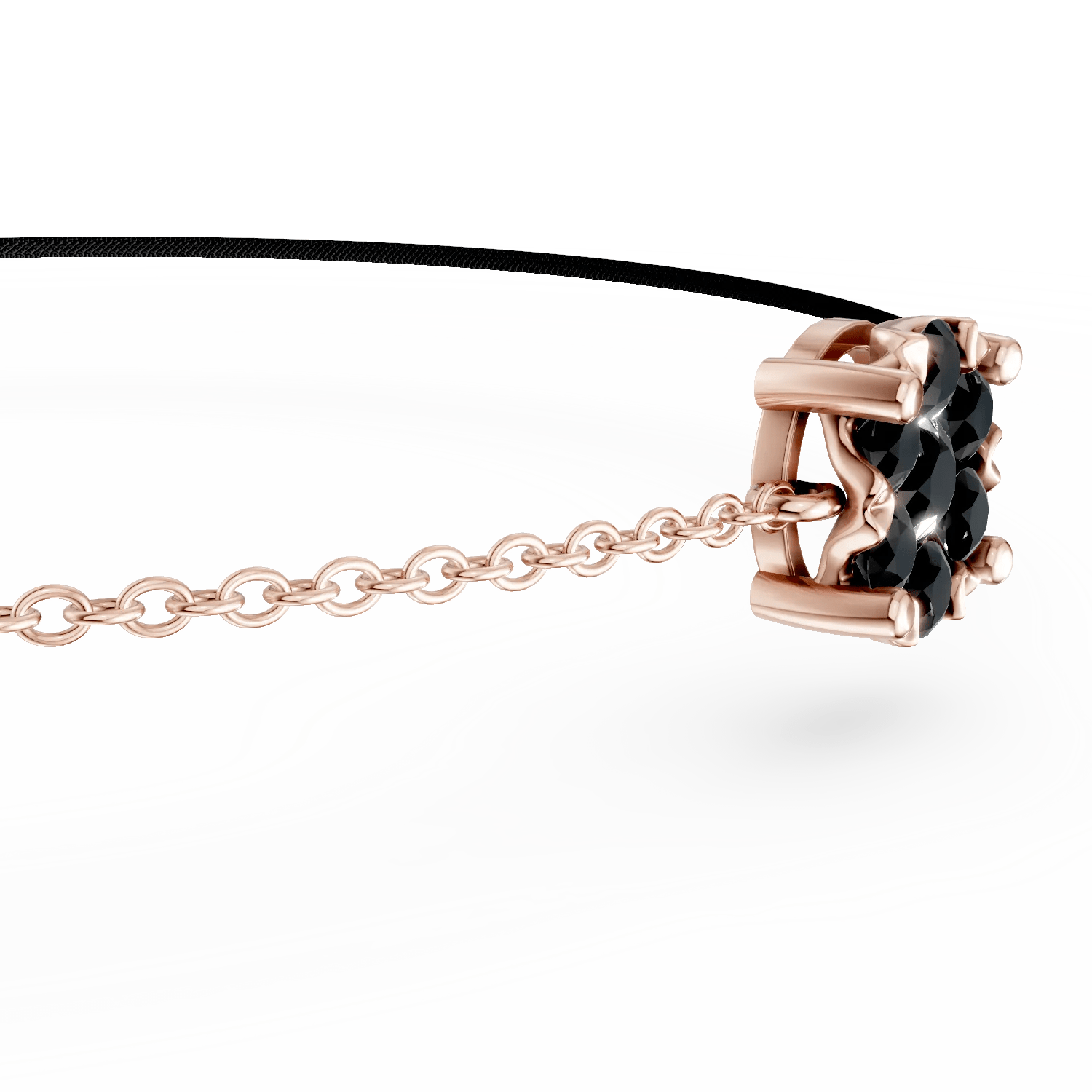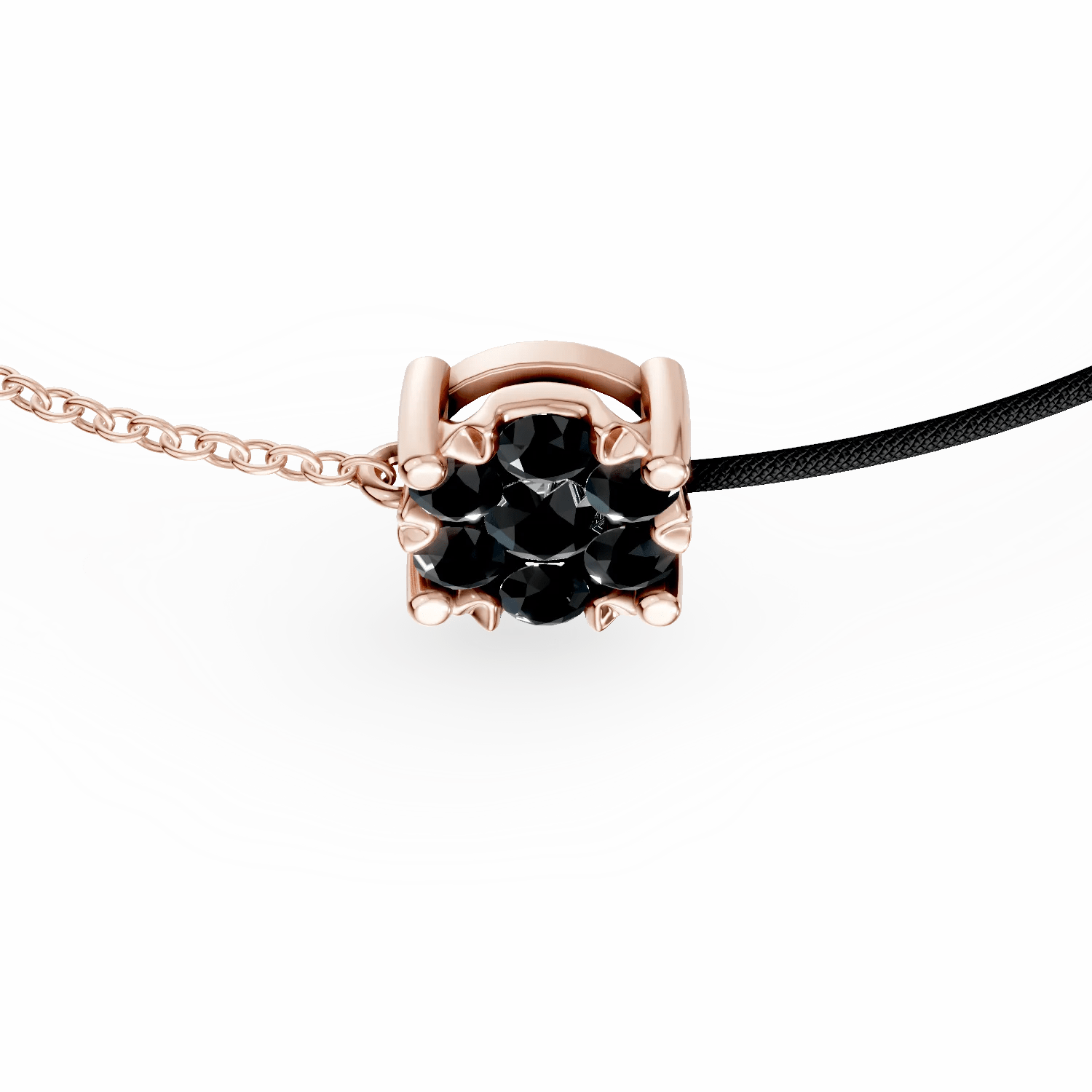 Această brățară din aur roz, cu diamante negre de 0.122ct, se evidențiază printr-un design modern și detalii rafinate. Combinația armonioasă dintre aurul cald și diamantele negre intense conferă o notă sofisticată fiecărei ținute.
