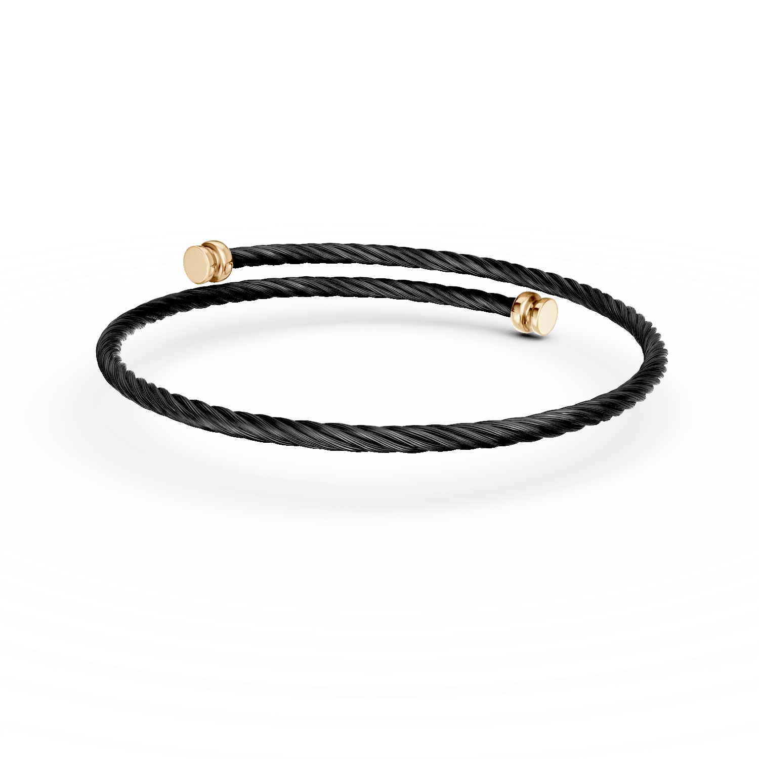 Completează-ți stilul cu această brățară din oțel și aur galben, adăugând un touch personal ținutei tale. Designul robust și accentele masculine contribuie la un aspect elegant.