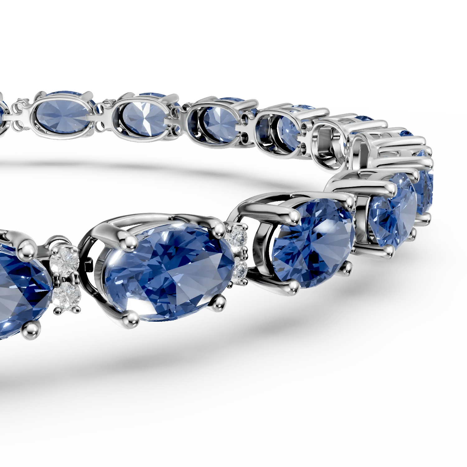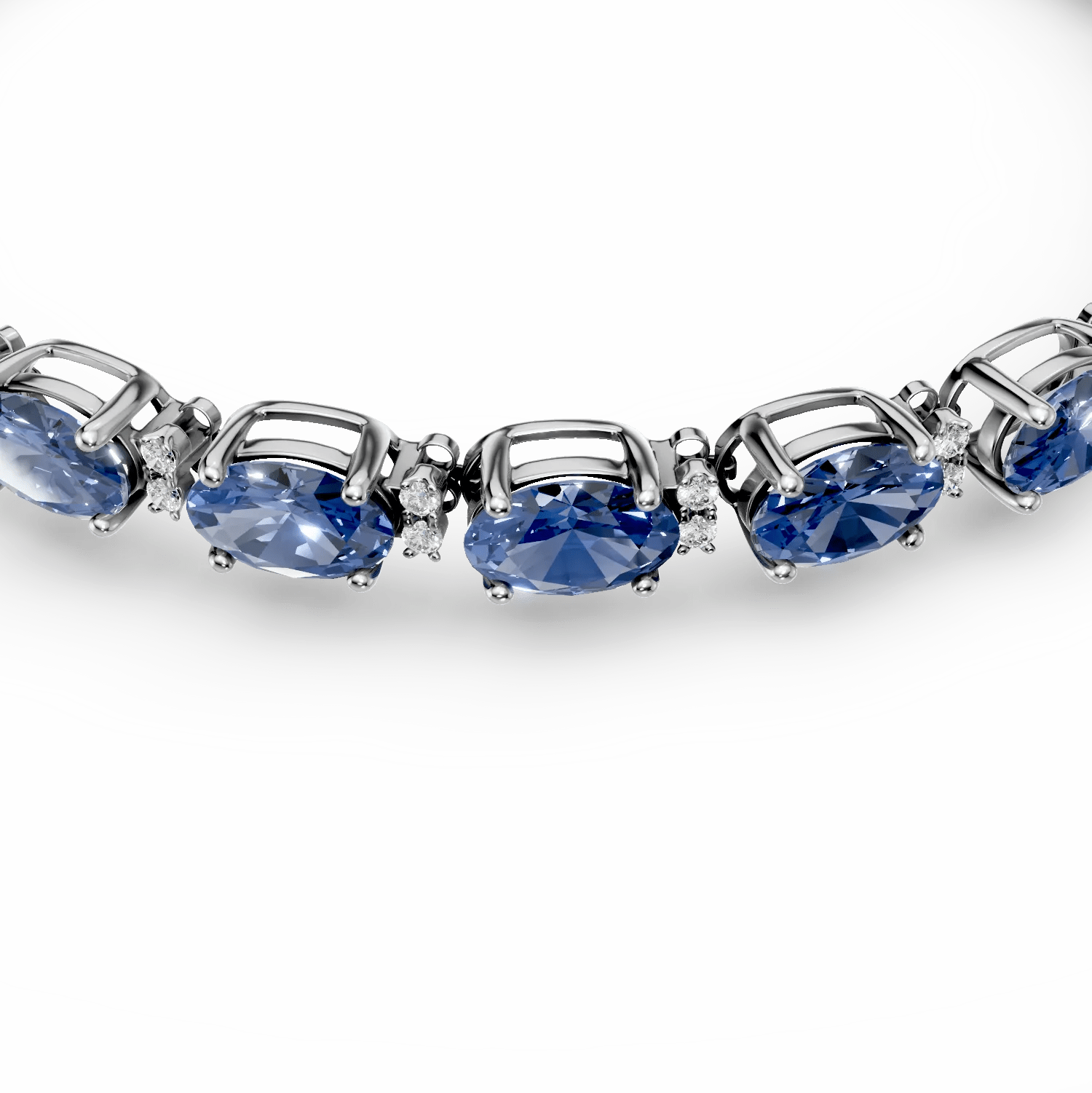 Brățara tenisie din aur alb cu tanzanite ovale de 10.89ct și diamante de 0.26ct combină nuanțele albastre-violet ale tanzanitului cu luminozitatea delicată a diamantelor.