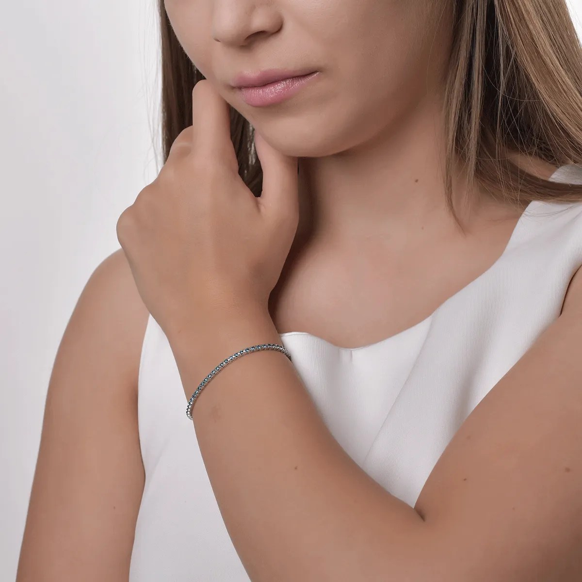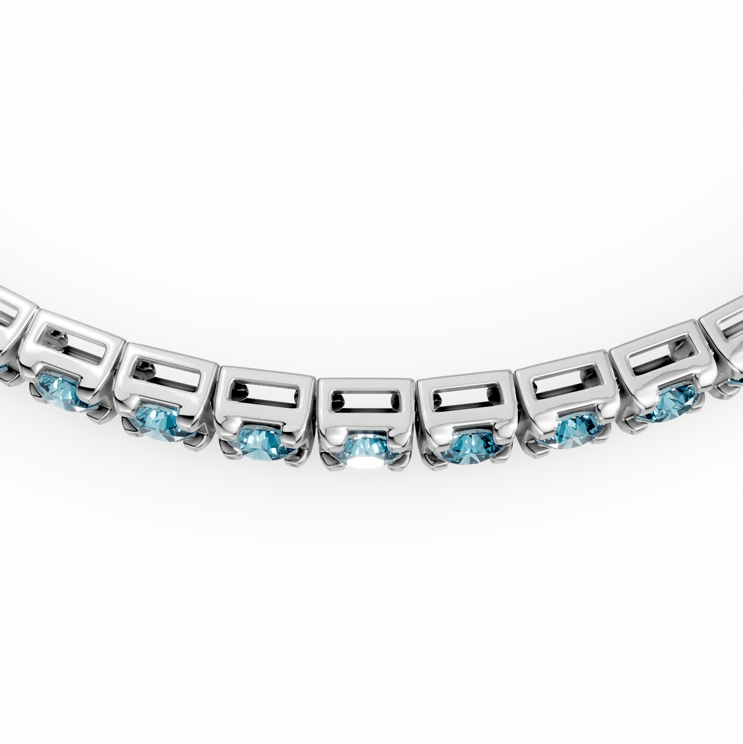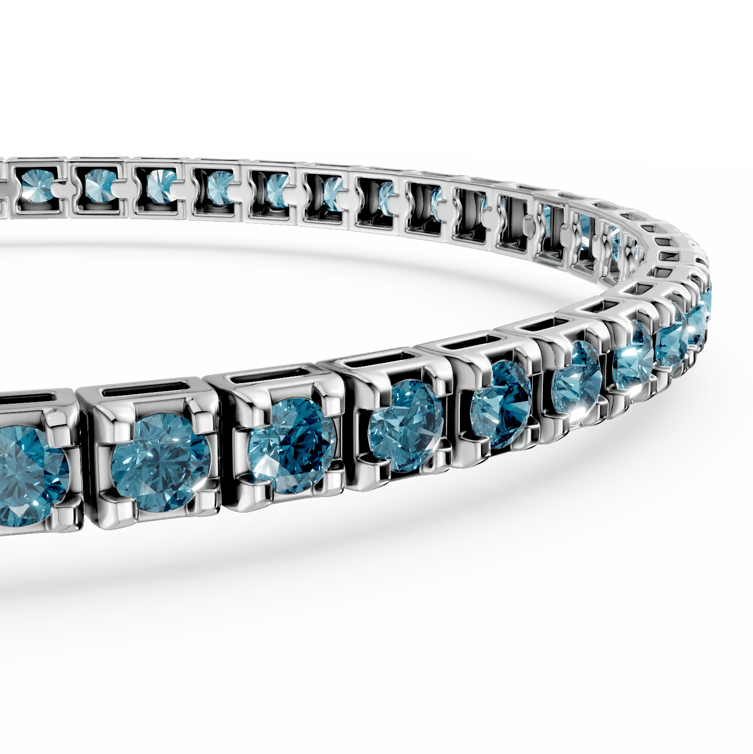 Fiecare bijuterie poartă o poveste distinctă. Această brățară tennis din aur alb cu diamante albastre, având un total de 2.15ct, aduce o notă modernă unor linii clasice, unde finețea și eleganța se îmbină armonios.