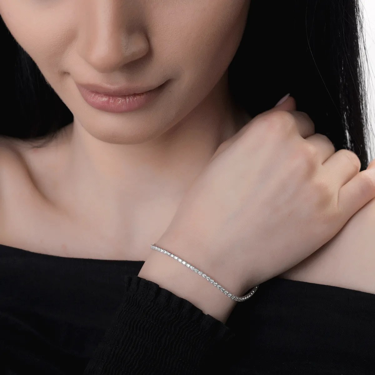 Brățară din aur alb cu diamante de 1.42ct, recunoscută pentru eleganța sa discretă și designul rafinat. Diamantele deosebite sunt selecționate pentru claritate și strălucire, oferind un echilibru perfect între clasic și modern. Ideală pentru femeile care apreciază detaliile de finețe și eleganța autentică.