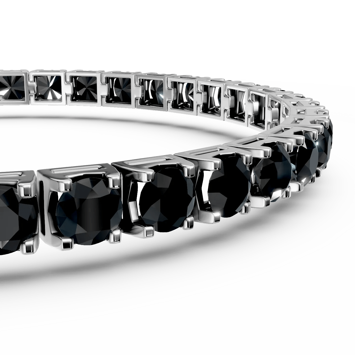 Povestește prin bijuterii cu această brățară tennis din aur alb. Decorată cu diamante negre tăietură rose, de 12ct, captura subtil lumina. Designul său îmbină rafinamentul clasic cu accente moderne, simbolizând stilul și încrederea ta.