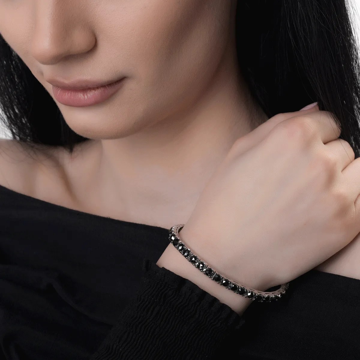 Această brățară tennis din aur alb, înfrumusețată cu diamante negre tăiate rose de 9.7ct, emană eleganță și strălucire subtilă. Tăietura rose conferă diamantelor o textură rafinată și luminozitate caldă, atrăgând privirile cu farmecul său discret. Un echilibru perfect între mister și stil modern, ideală atât pentru ținute de zi, cât și pentru ocazii de seară.