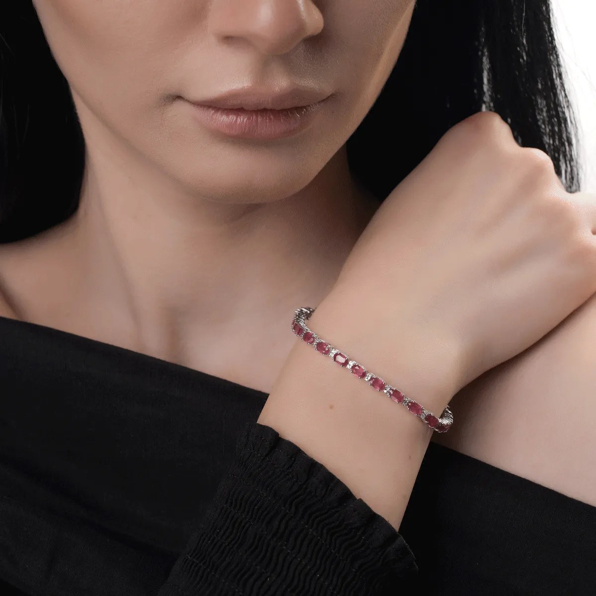 Descoperă eleganța delicată a acestei brățări tennis din aur alb, împodobită cu rubine ovale de 8.5ct și diamante de 0.2ct. Această piesă subliniază frumusețea clasică prin taietura ovala a rubinelor, oferind un echilibru perfect între simplitate și rafinament. Ideală pentru femeile care apreciază detaliile subtile și designul strălucitor.