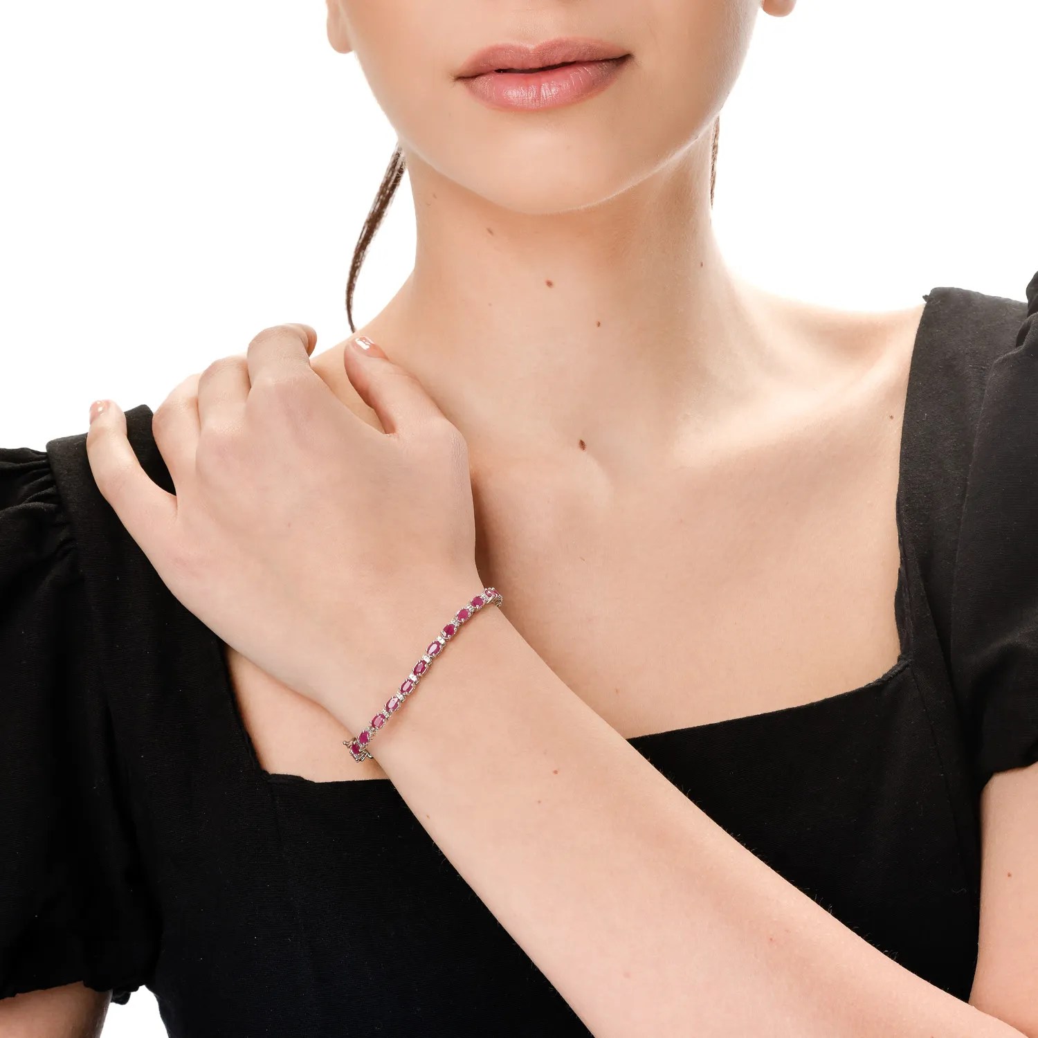 Intră în lumea fascinantă a bijuteriilor cu această brățară tennis din aur alb, decorată cu rubine ovale de 7.16ct și diamante de 0.31ct. Rubinul roșu intens, simbol al pasiunii și forței interioare, este perfect echilibrat de strălucirea diamantelor. Designul său clasic cu accente moderne adaugă eleganță și rafinament oricărei ținute.