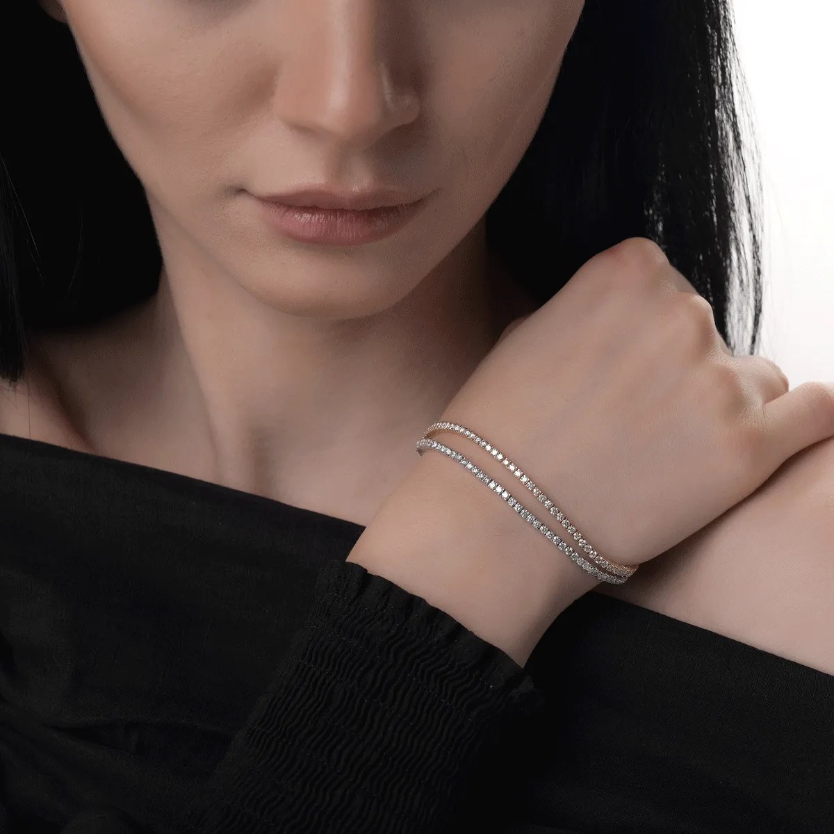 Această brățară tennis îmbină armonios aurul alb-galben cu diamante de 4.72ct, oferind un joc remarcabil de lumină și strălucire. Designul său elegant scoate în evidență rafinamentul și stilul delicat, fiind o alegere care surprinde feminitatea și echilibrul atemporal.