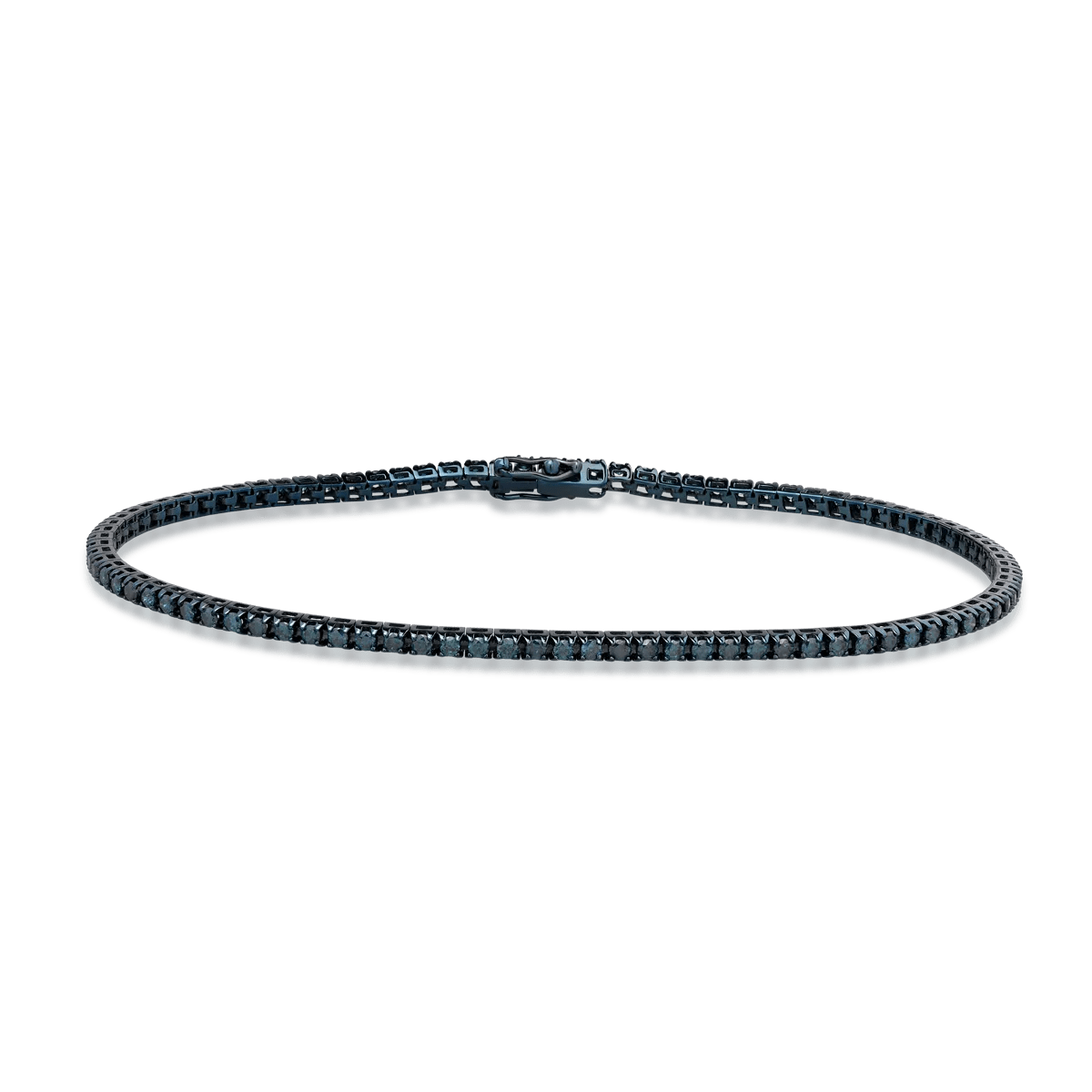 Această brățară tennis, realizată din aur albastru și împodobită cu diamante albastre de 1.7ct, reprezintă o alegere elegantă. Designul său rafinat accentuează feminitatea, îmbinând strălucirea pietrelor cu tonul vibrant al aurului. Ideală pentru orice moment al zilei, este un simbol al încrederii și al echilibrului.