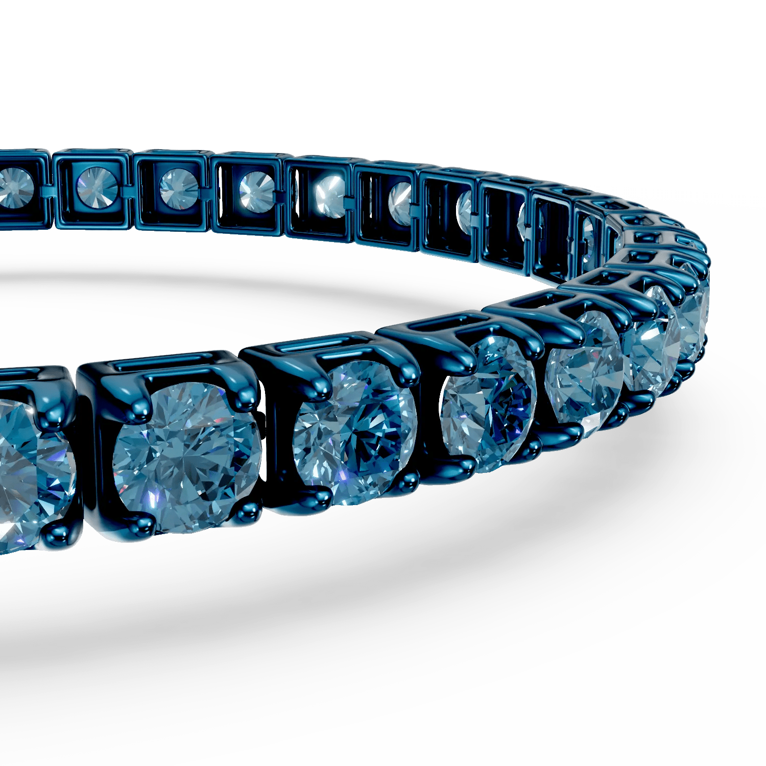 Cu un contur expresiv și nuanțe versatile, brățara tennis din aur albastru cu diamante albastre de 5.9ct este perfectă pentru femeia ce prețuiește rafinamentul și eleganța autentică. Sirul fluid de pietre fine înconjoară delicat încheietura, reflectând lumina într-un joc sofisticat de străluciri. Designul său impecabil și intensitatea culorilor transformă această bijuterie într-un simbol al stilului desăvârșit, adăugând echilibru și distincție oricărei apariții.