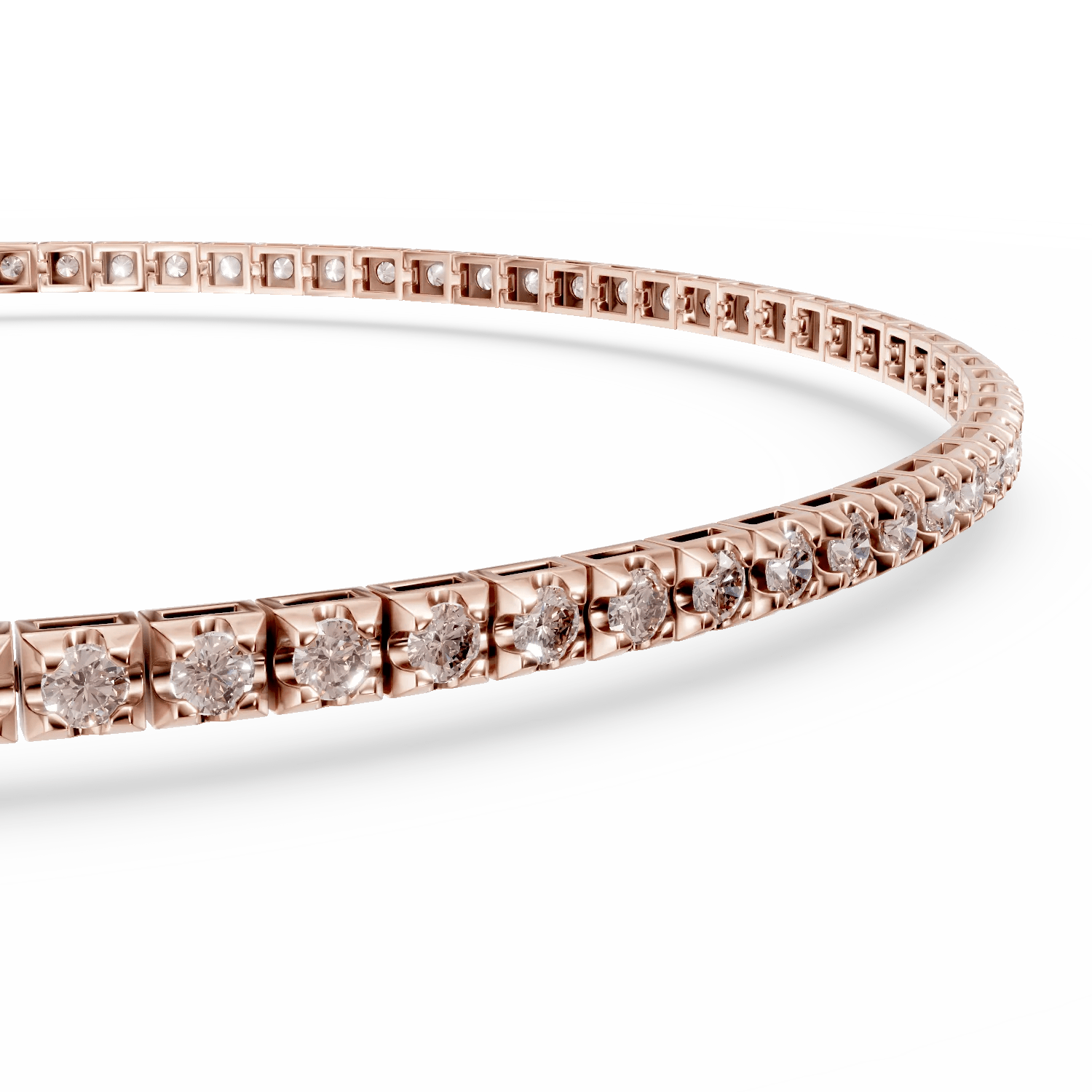 Răsfață-te cu o brățară tennis din aur roz, decorată cu diamante maro de 1.6ct, ce reflectă rafinament și feminitate contemporană. Această piesă îmbină armonios strălucirea călduroasă a diamantelor cu tonurile subtile ale aurului roz, creând un efect de luminozitate și culoare. Designul elegant învăluie delicat încheietura, subliniind stilul natural și încrederea.