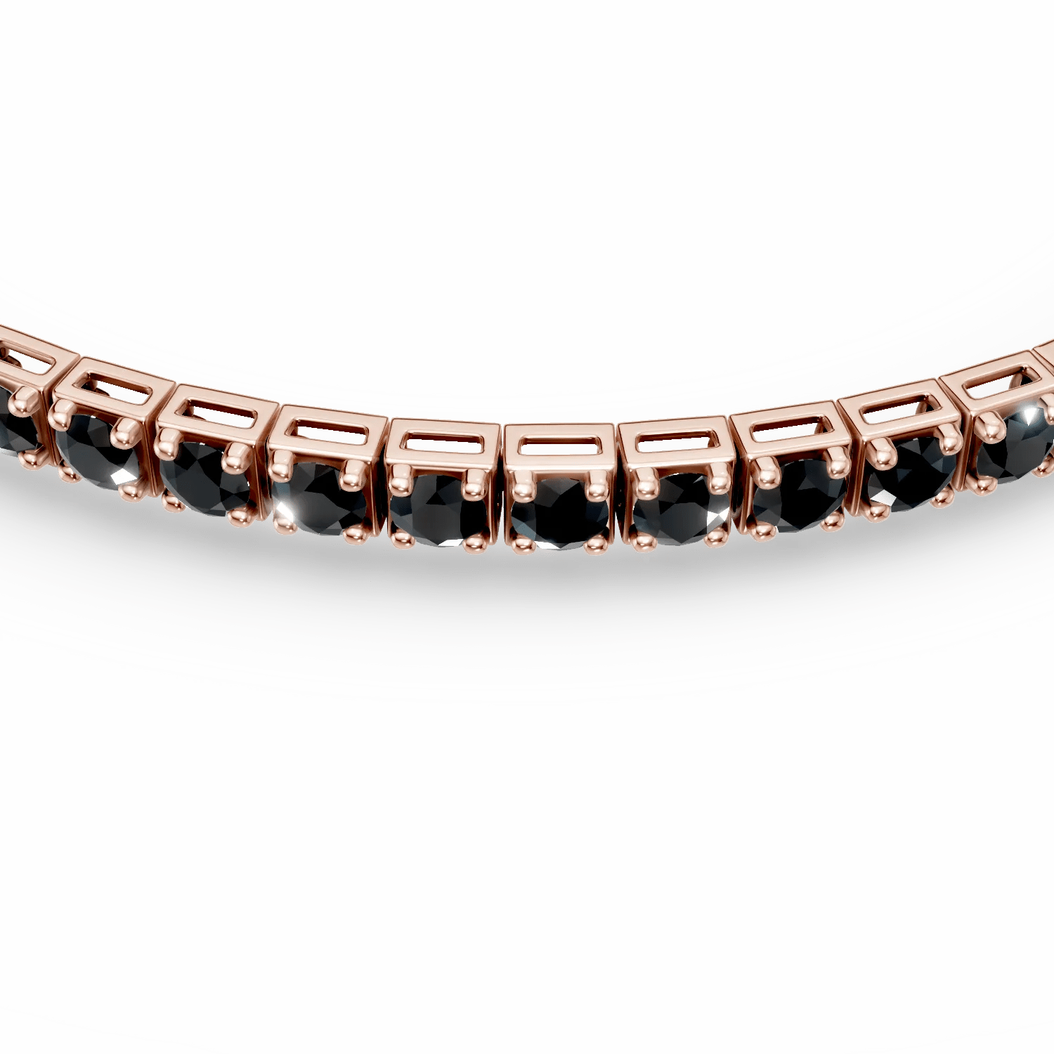 Această brățară tennis din aur roz cu diamante negre de 4.8ct combină eleganța clasică cu un rafinament modern. Detaliile sale rafinate subliniază contrastul dintre nuanțele aurului și intensitatea diamantelor, rezultând într-un efect vizual remarcabil. Potrivită atât pentru ținutele de seară, cât și pentru cele de zi cu zi.