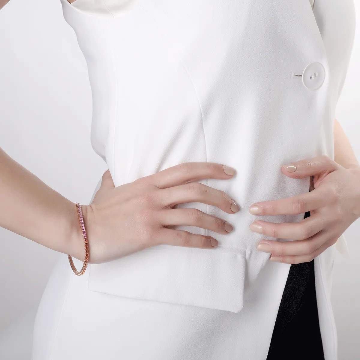 Exprimați-vă personalitatea cu această brățară tennis din aur roz, înfrumusețată cu safire multicolore de 5.15ct. Îmbinarea sofisticată a nuanțelor de safir adaugă o notă distinctă de eleganță și feminitate, completând orice gest cu strălucire și rafinament. Colectia TEILOR aduce un omagiu modernității și frumuseții fiecărei zile.