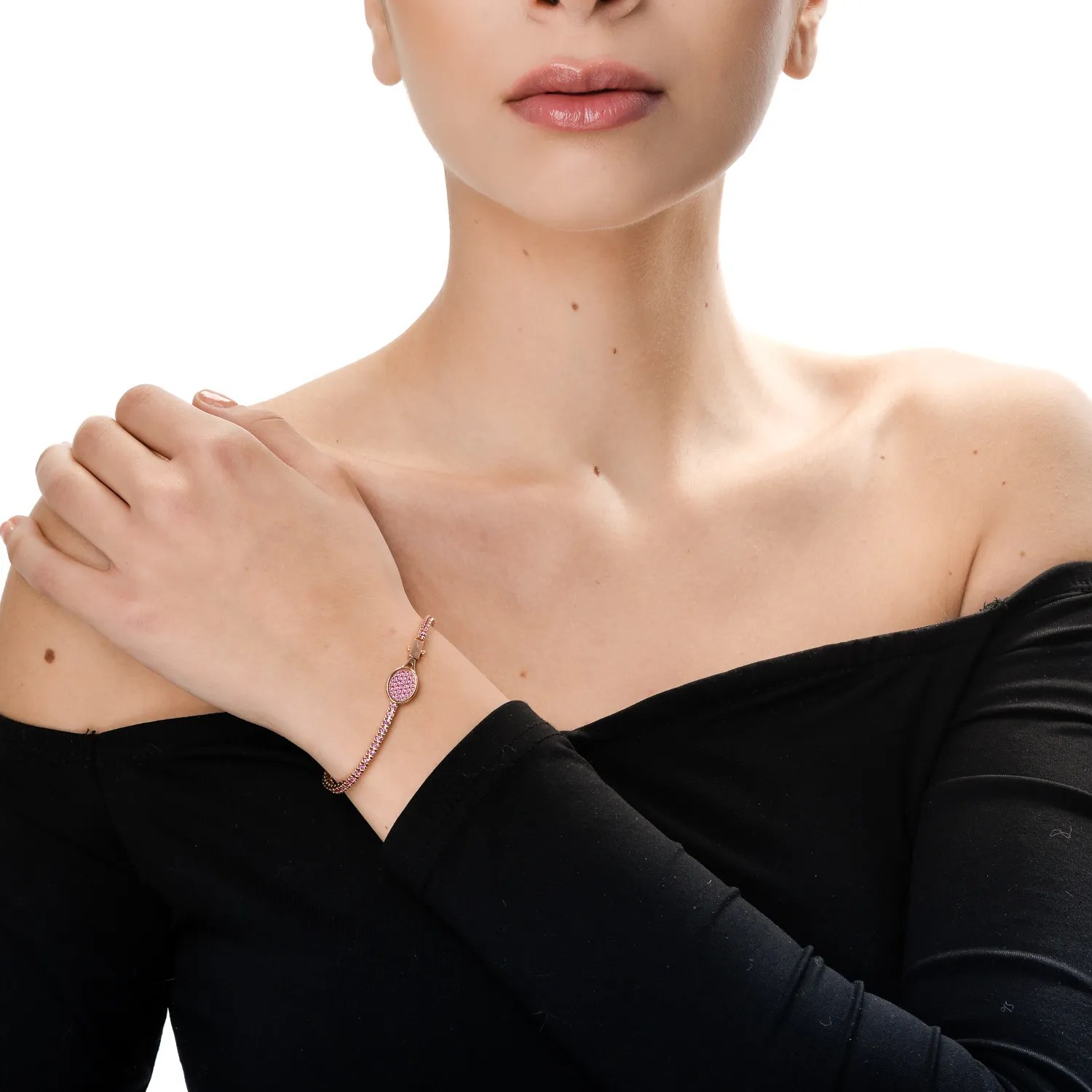 Din colecția capsulă Tennis by Ilie Năstase, această brățară tennis din aur roz reinterpretează stilul clasic și simbolizează perseverența. Creata alături de designeri italieni, piesa impresionează prin safirele roz și sistemul de închidere inovativ, marcat de emblematicul simbol al rachetei de tenis. Ideală atât pentru bărbați, cât și pentru femei.