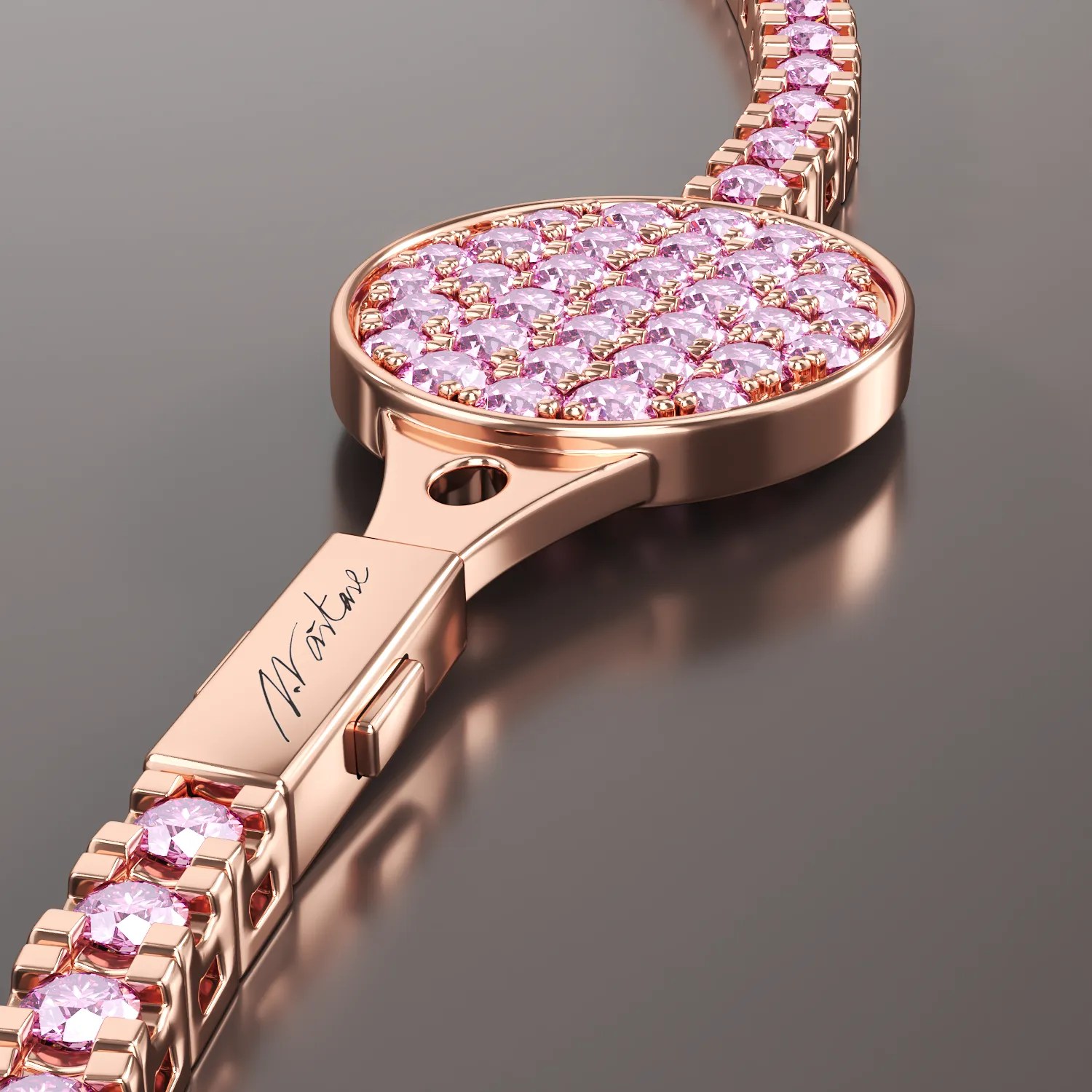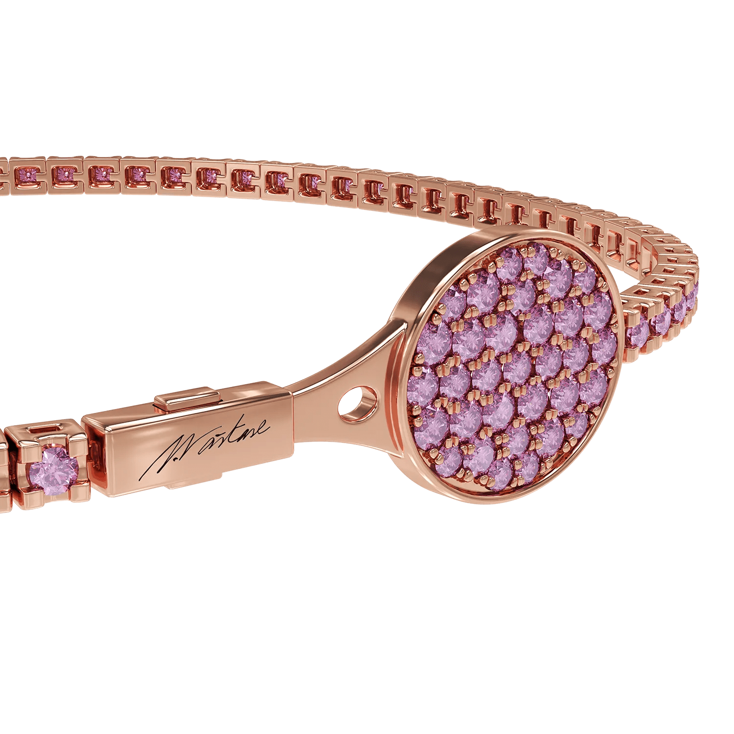 Colecția capsulă Tennis by Ilie Năstase aduce un omagiu clasicului, fiind un simbol al perseverenței. Această brățară din aur roz, realizată în colaborare cu designeri italieni, se evidențiază prin safirele roz și sistemul de închidere inovator cu detalii de rachetă de tenis. O creație deosebită, potrivită pentru ambele genuri. La achiziție, primești un album cadou semnat de Ilie Năstase.