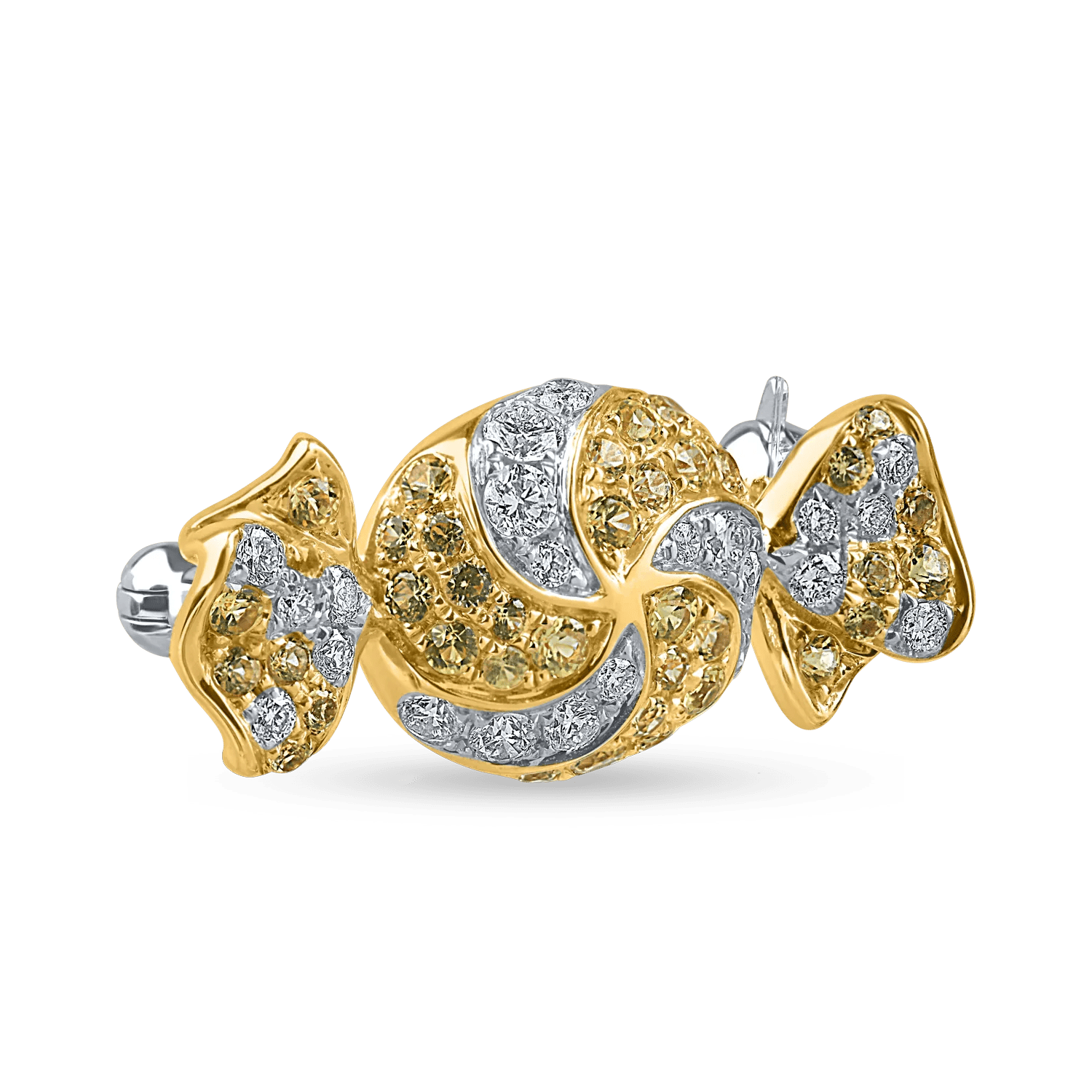 Designul sofisticat al acestei broșe bomboană combină aurul alb-galben cu diamantele de 0.3ct și safirele galbene de 0.5ct, emanând inspirație și încredere.