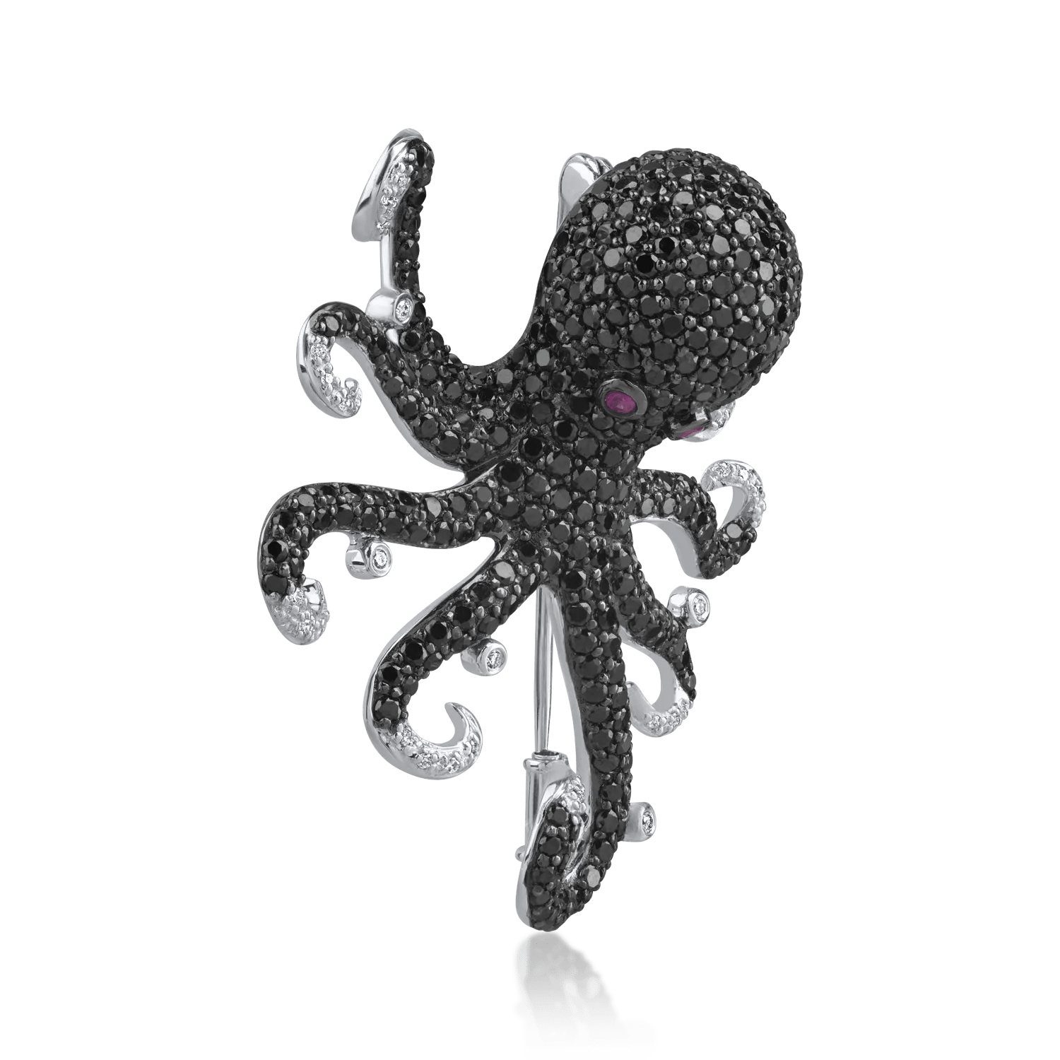 Această broșă elegantă din aur alb este înfrumusețată cu diamante de 5.67 carate și safire roz de 0.06 carate. Designul său rafinat pune în evidență detaliile fine, oferind o strălucire distinctă cu fiecare mișcare. Accentele feminine de safir roz aduc o notă de eleganță subtilă.