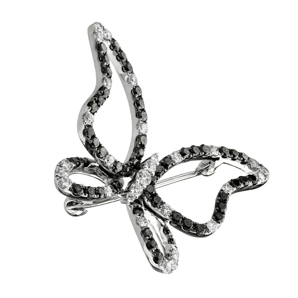 Descoperă noi fațete ale personalității tale. Broșa din aur alb, cu diamante negre de 1.18ct și diamante transparente de 0.58ct, pune în valoare rafinamentul tău prin detalii fine și eleganță modernă. Diamantele negre oferă profunzime, în timp ce cele transparente adaugă contrast. Montura subliniază eleganța acestei bijuterii inspirate de curajul de a fi remarcată.