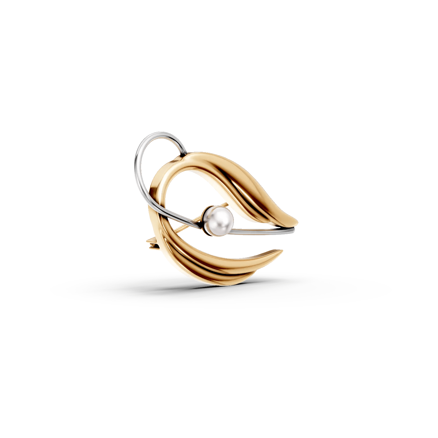 Această broșă din aur alb-galben, decorată cu o perlă sintetică, îți subliniază eleganța prin detalii fine. Suprafața netedă a perlei reflectă lumină subtil, accentuând frumusețea bijuteriei. Aurul bicolor completează aspectul sofisticat cu un contrast delicat, perfect pentru femeile care apreciază detaliile rafinate.