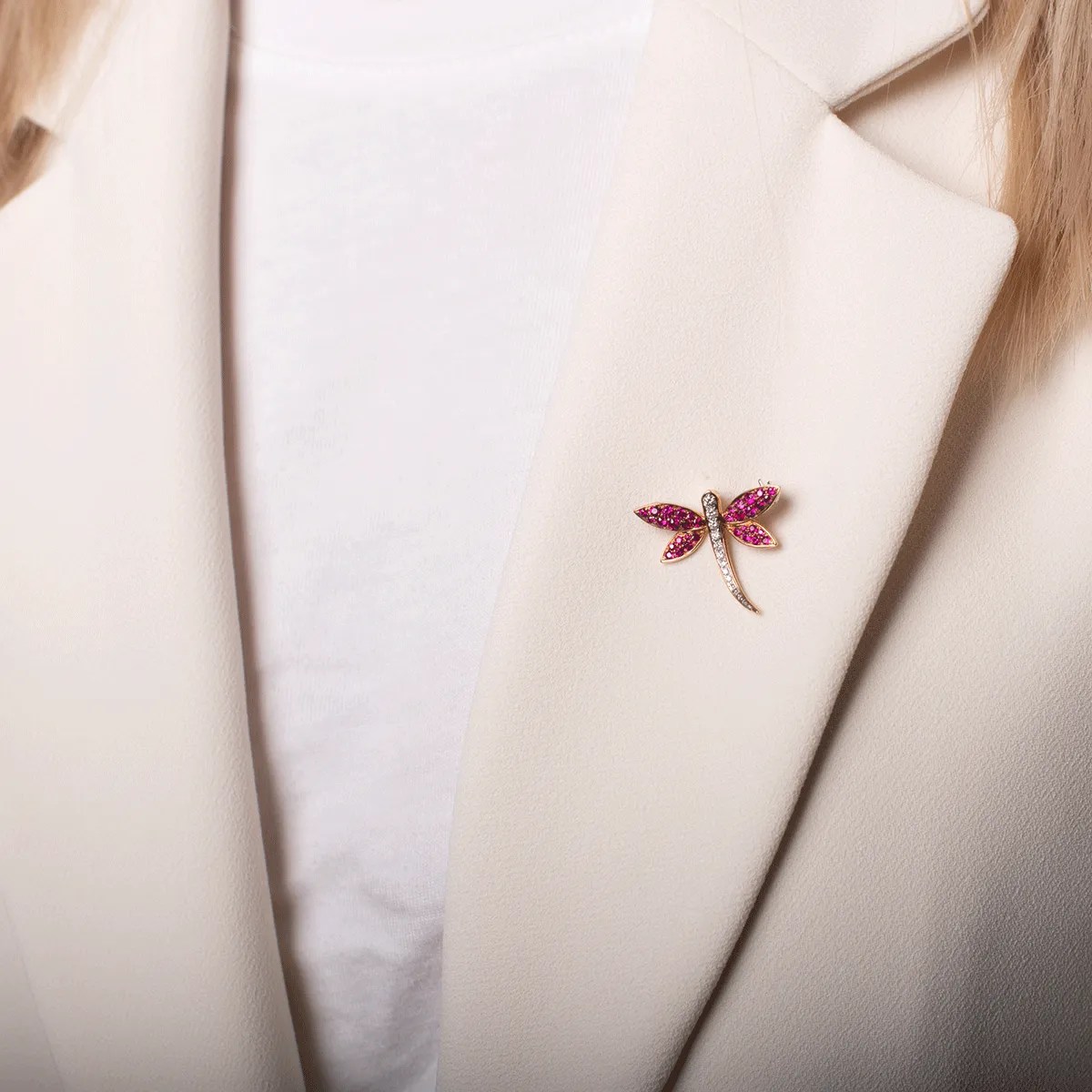 Aurul roz completează frumos pietrele, oferindu-i o notă feminină și sofisticată. Broșa simbolizează transformarea și grația, capturând perfect esența colecției TEILOR.