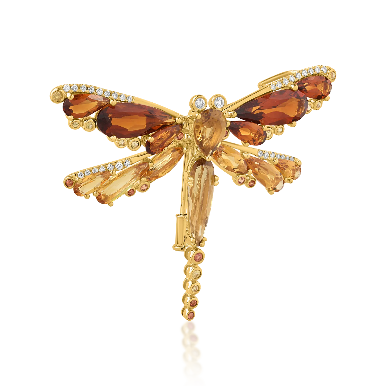 Această broșă în formă de libelulă, realizată din aur galben cu pietre prețioase și semiprețioase de 11.21ct, reflectă echilibru și eleganță. Detaliile fine și tonul cald al aurului îmbogățesc designul, oferind un plus de rafinament. Inspirată de libertate și feminitate, această bijuterie te ajută să ieși în evidență cu fiecare mișcare.