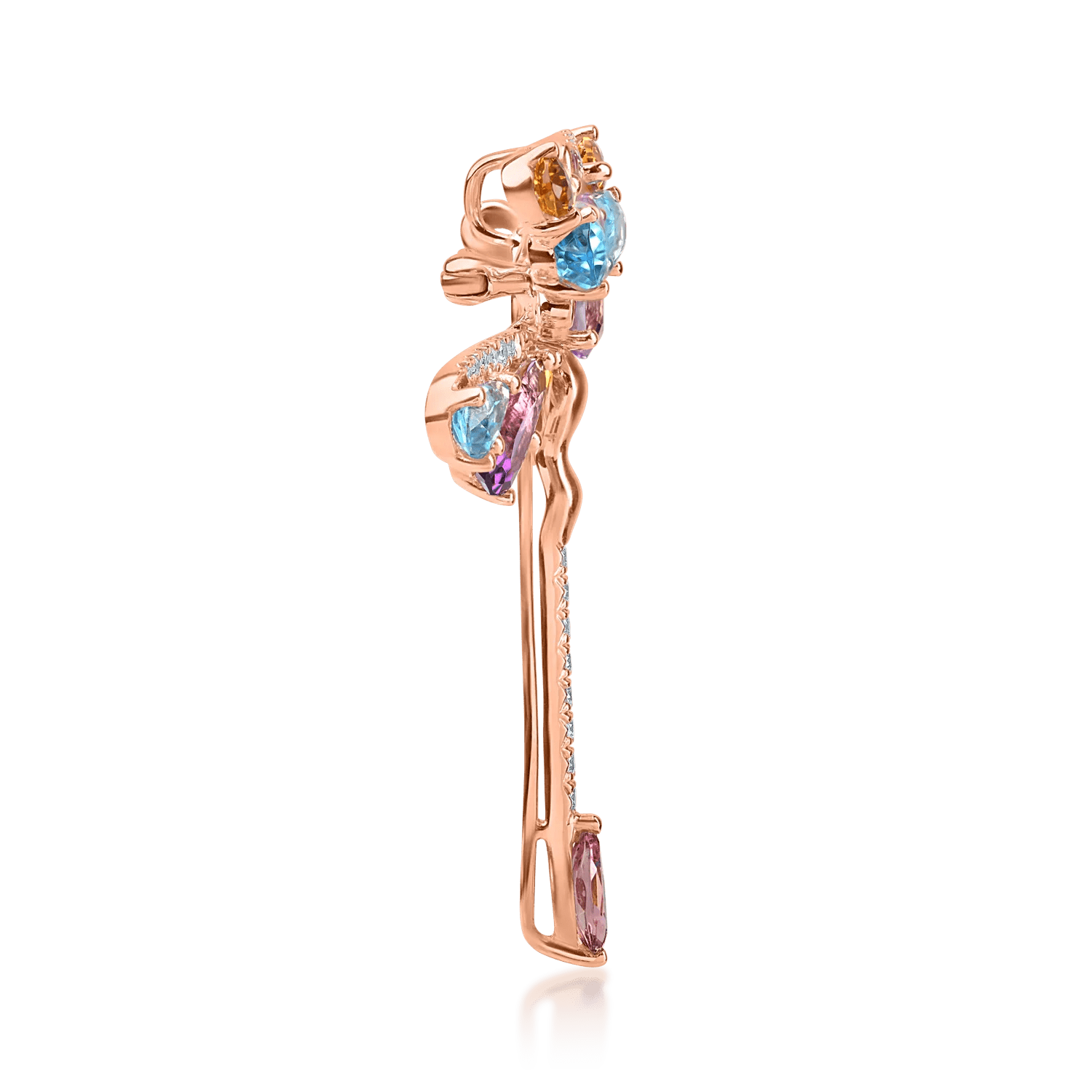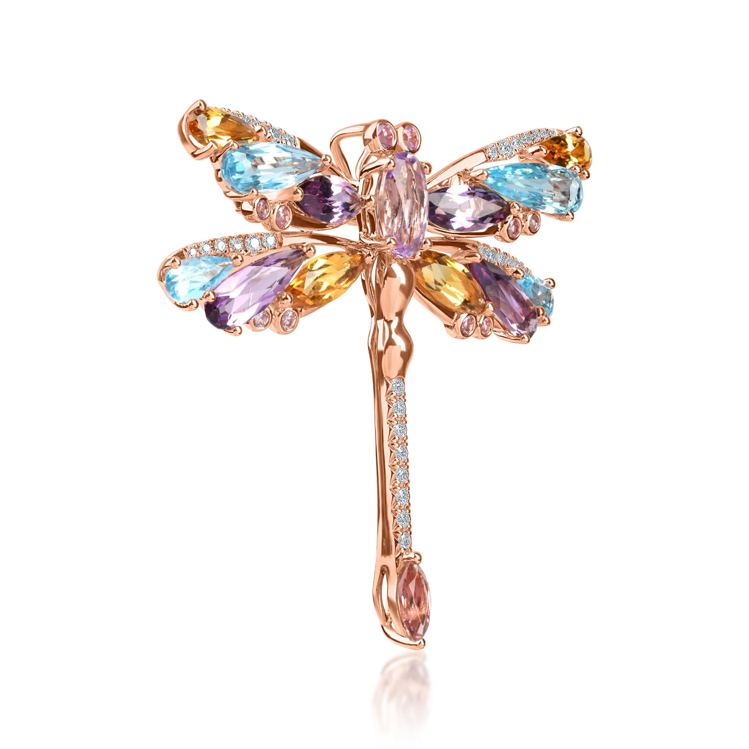 Descoperă o nouă dimensiune a personalității tale cu această broșă libelulă din aur roz, îmbogățită cu pietre prețioase și semiprețioase de 7.4ct. Fiecare detaliu fin este conceput să îți evidențieze stilul, cu reflexii vibrante și aripi ce simbolizează libertatea. Aurul roz adaugă un contrast armonios între tonurile calde și reci, oferind un rafinament memorabil.