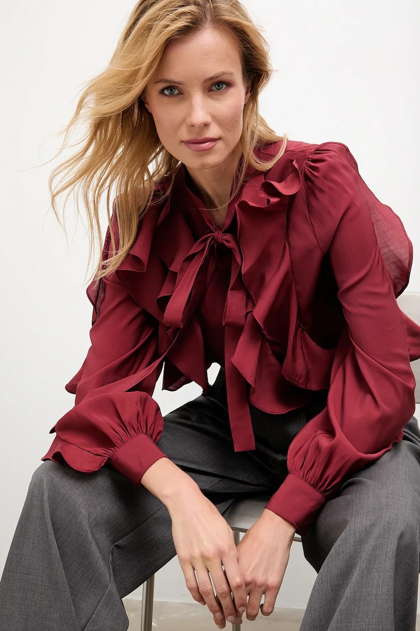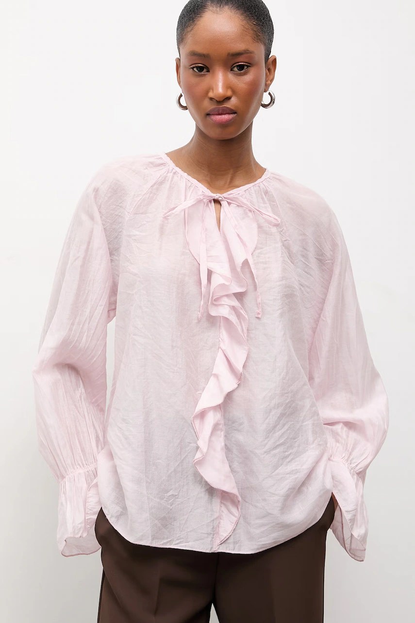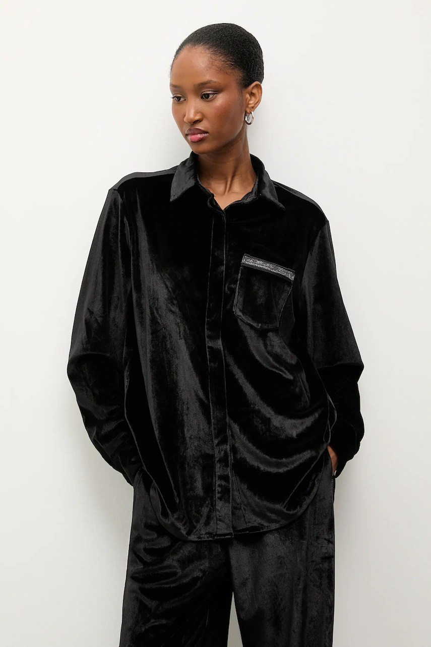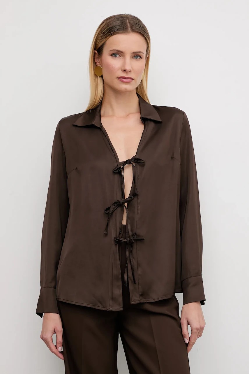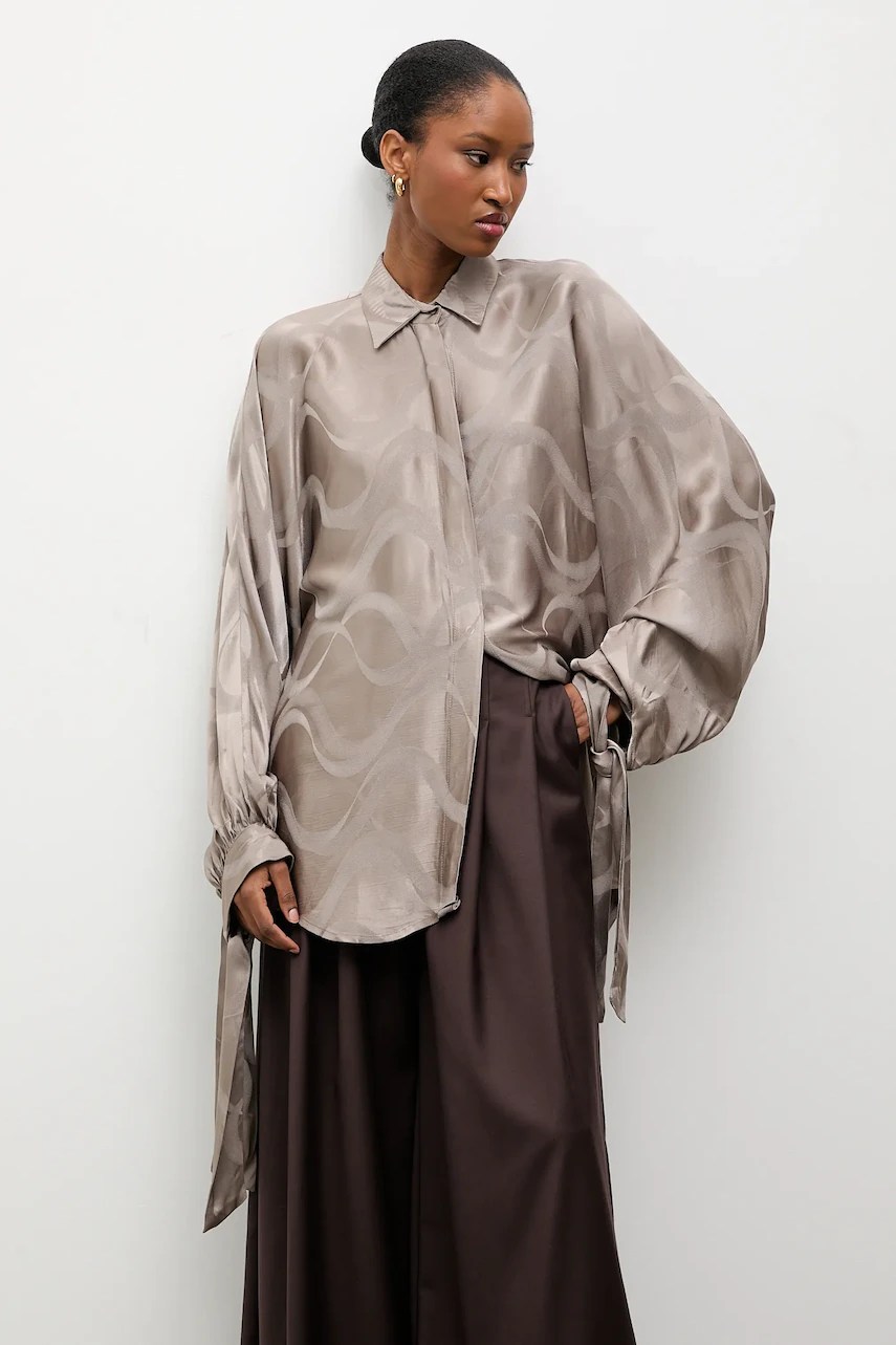 Cămașă realizată parțial din lyocell, un material derivat din celuloză din copaci cultivați în păduri certificate. Designul are o tăietură simplă fără blocare, iar închiderea cu nasturi permite o purtare ușoară.