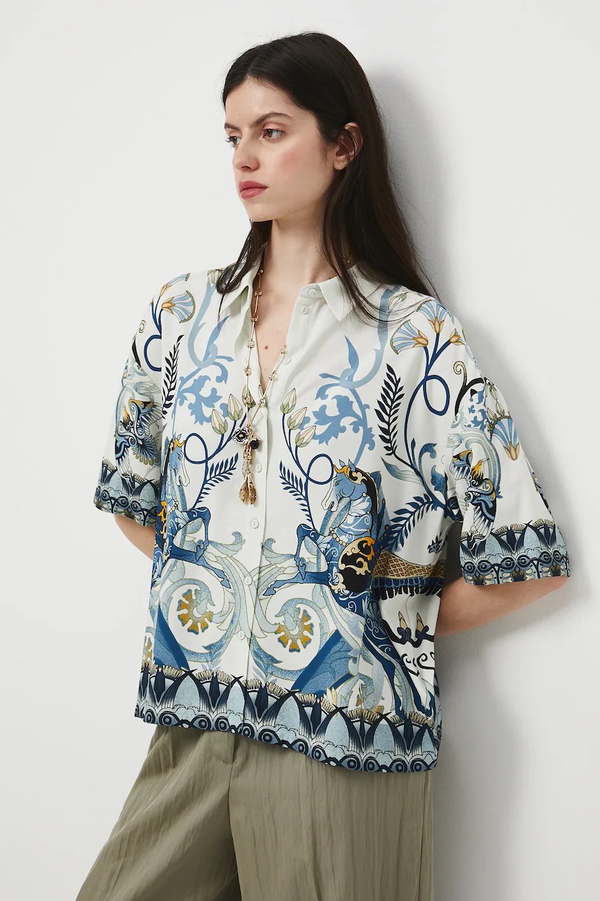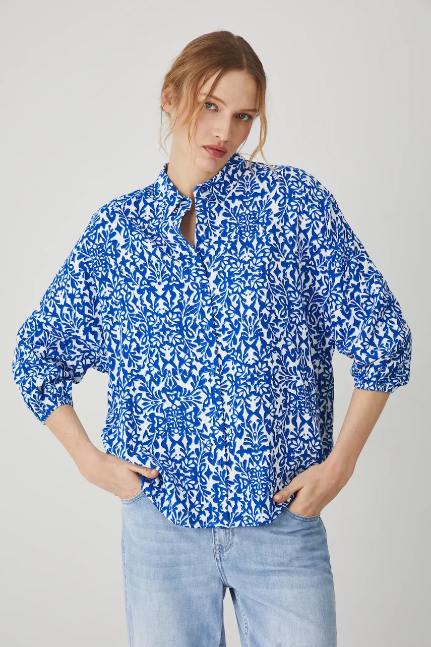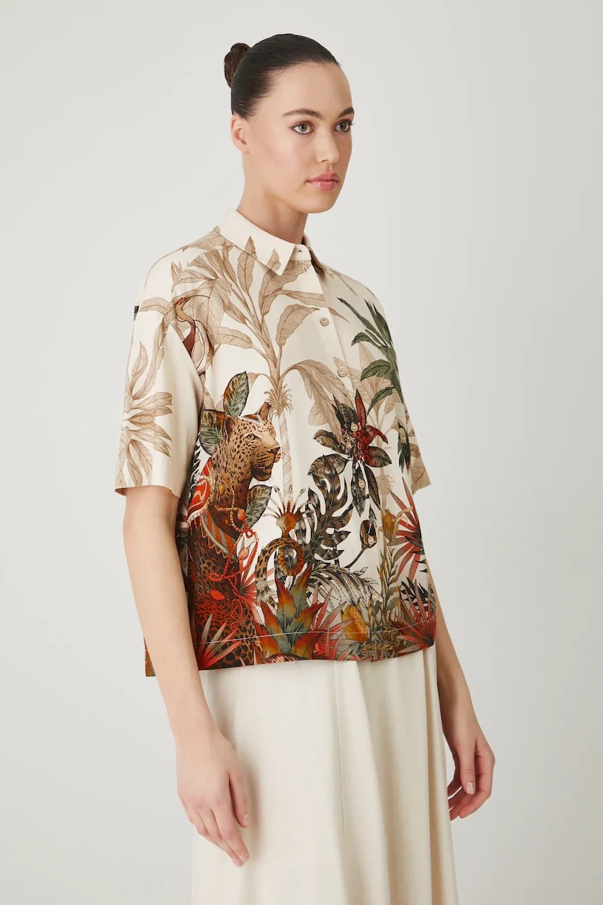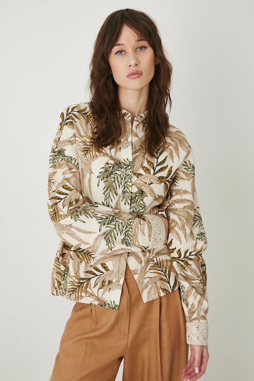 Cămașă confortabilă realizată din material din amestec de in, oferind respirabilitate excelentă.