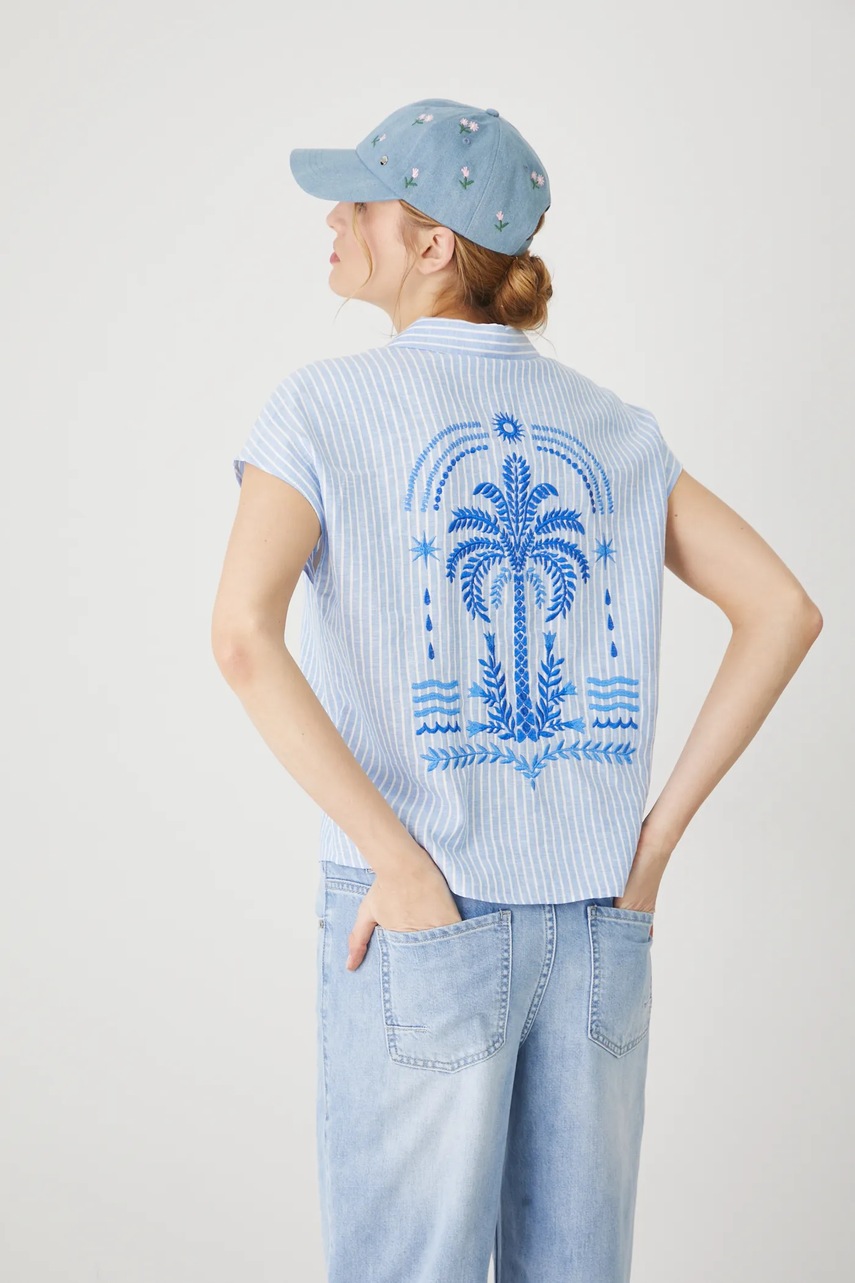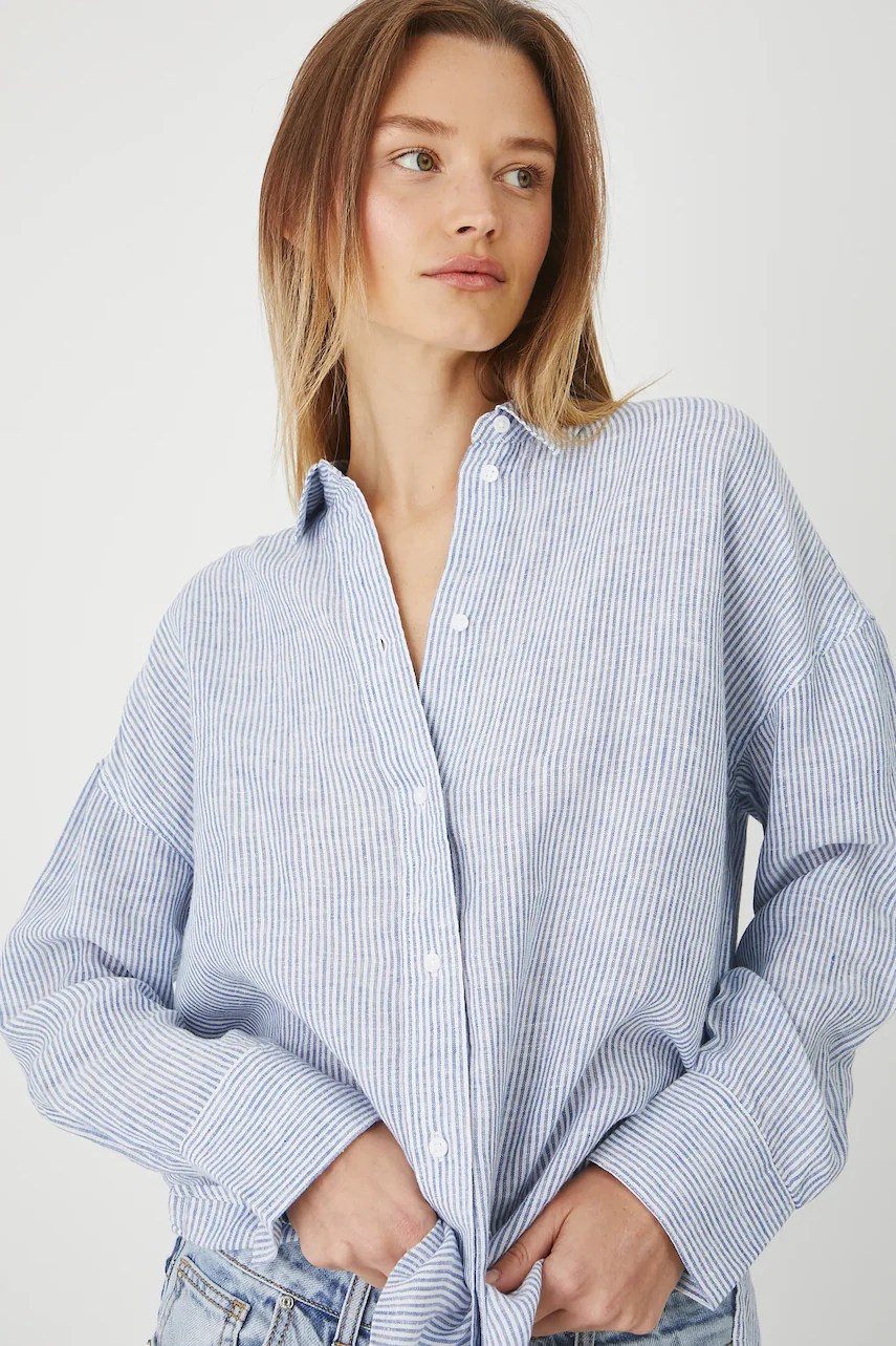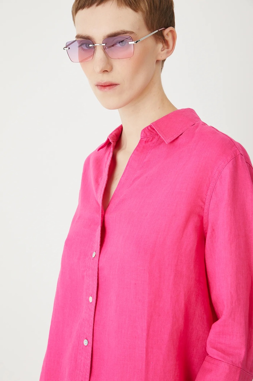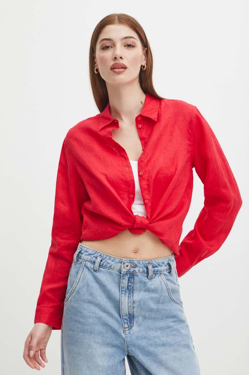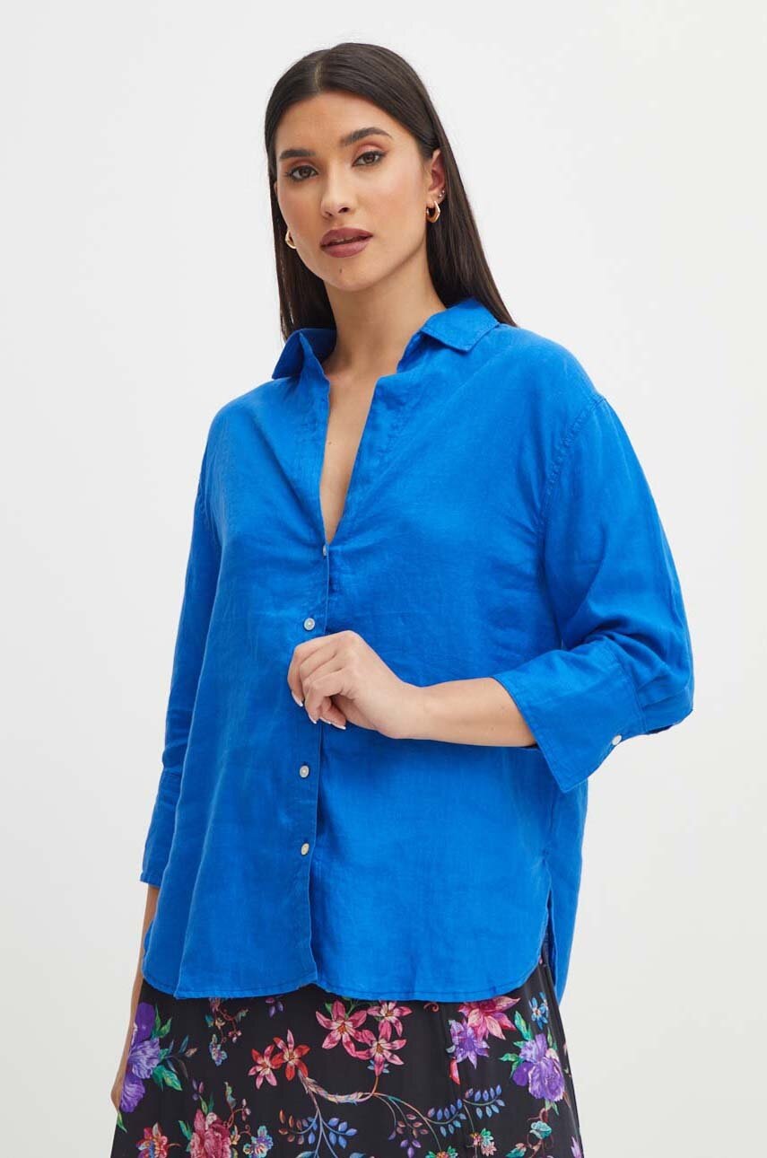 Cămașă confecționată din material natural 100% in, oferind un stil lejer și durabil.