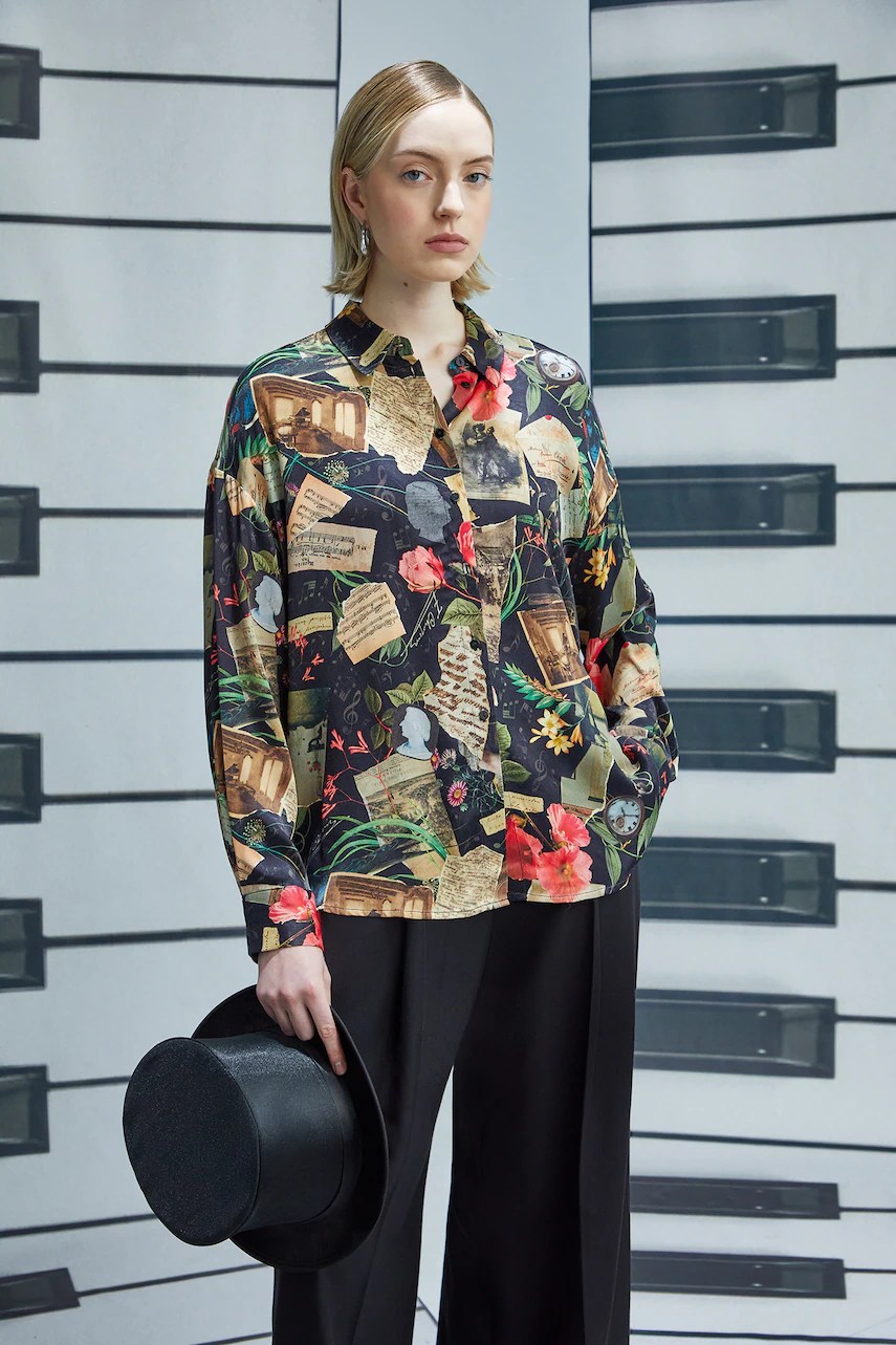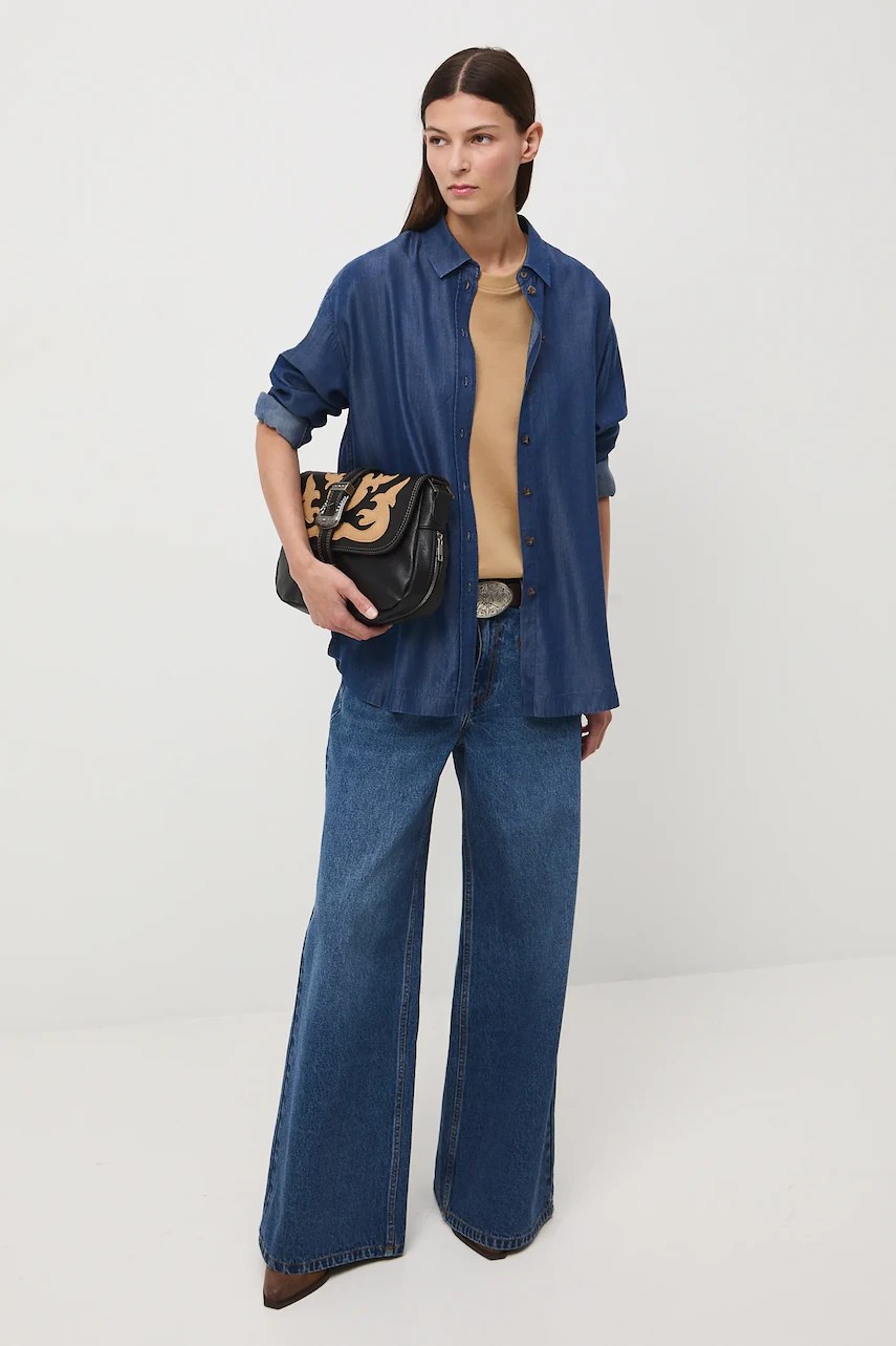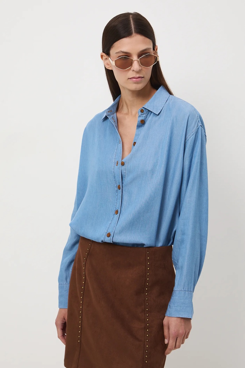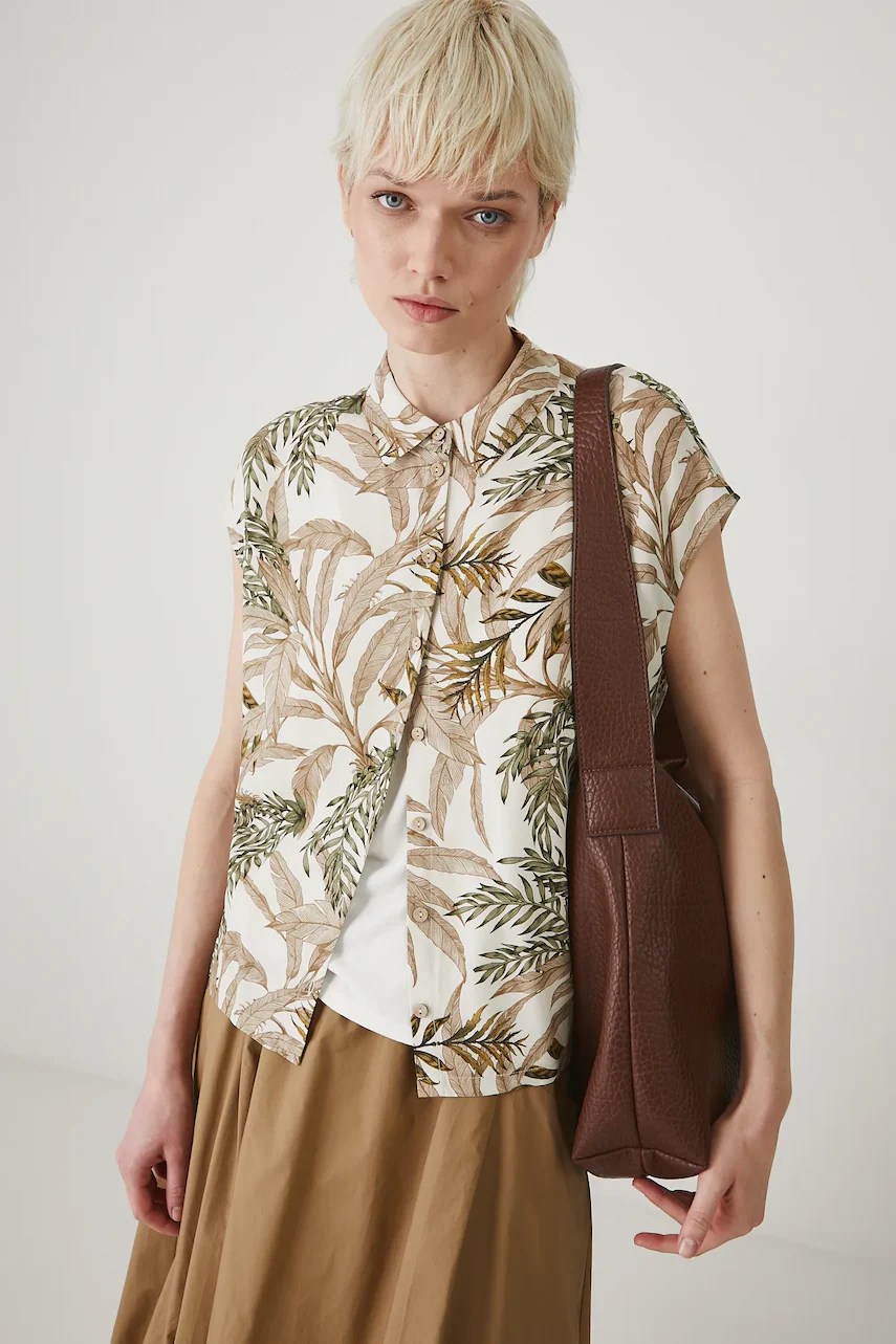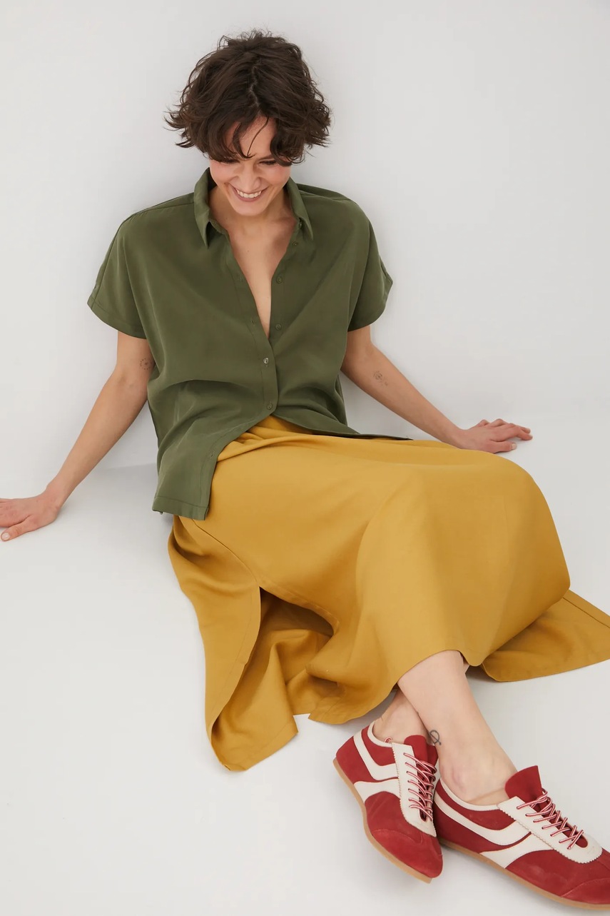 - Cămașă cu fason oversize și mânecă scurtă.