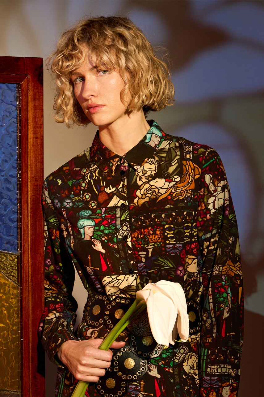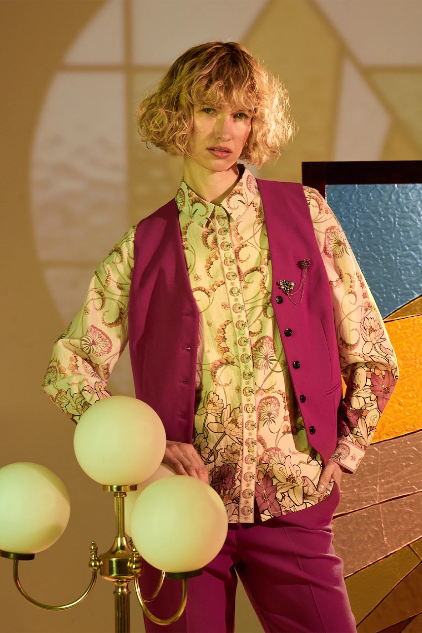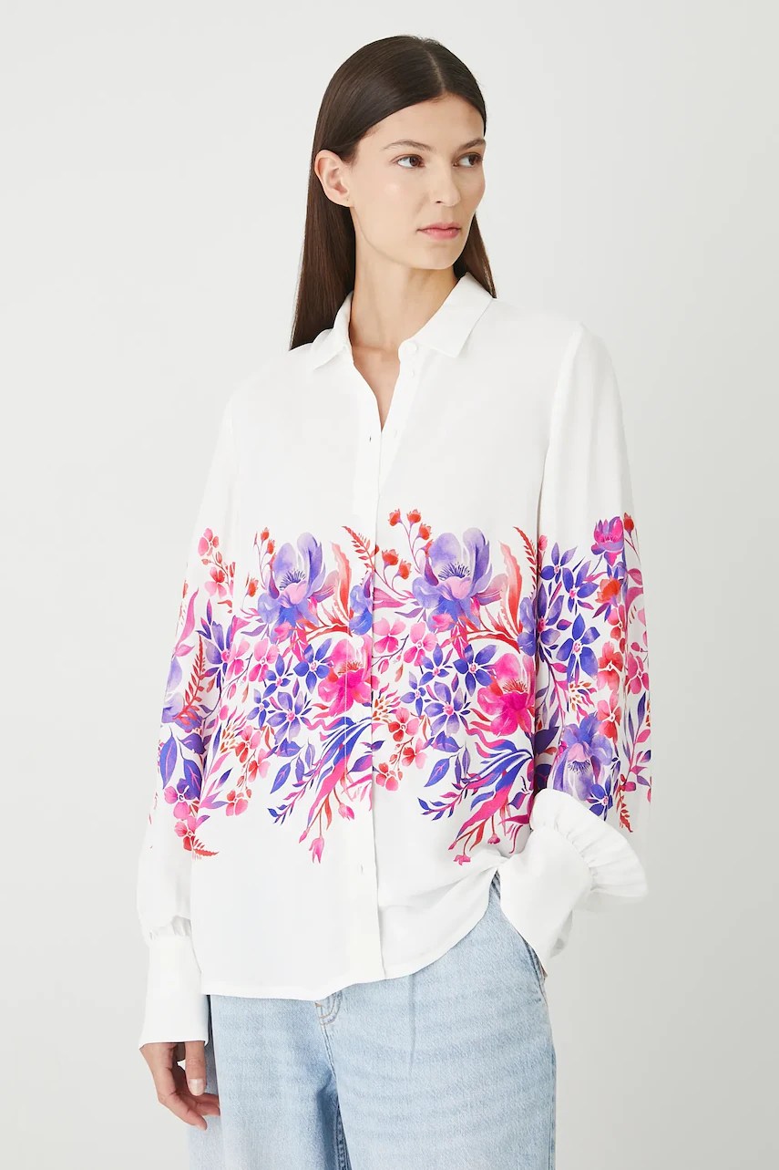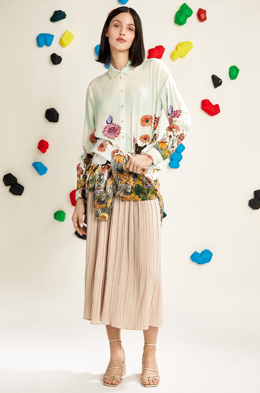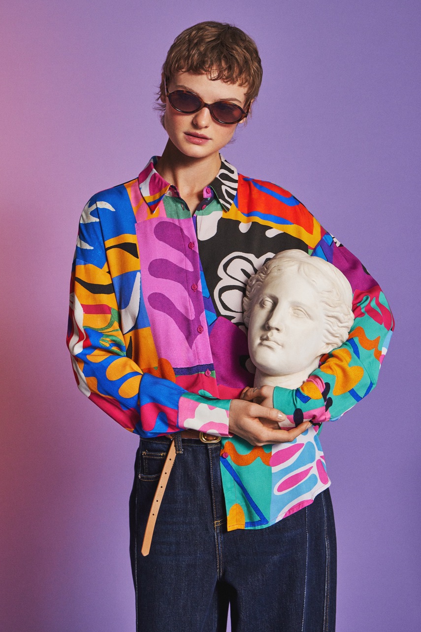 - Cămașă cu fason oversize și mânecă scurtă.