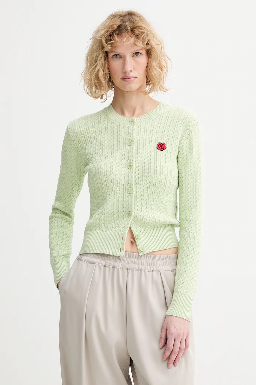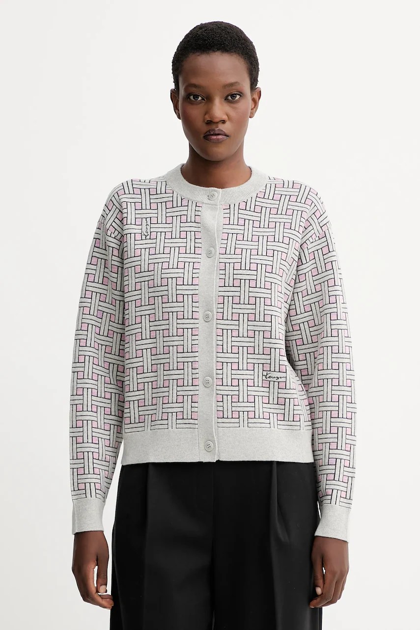 Cardigan oversize Kenzo, ideal pentru flexibilitate și confort. Este confecționat dintr-un material tricot subțire, oferind protecție cu bătături la mâneci și marginea inferioară.