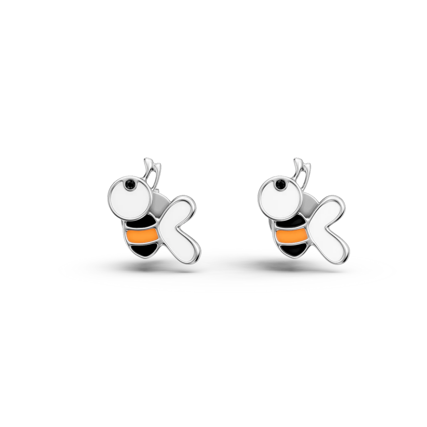 Acești cercei cu albinute din aur alb sunt decorați cu diamante negre de 0.005ct, fiind creați special pentru cei mici. Designul lor vesel și confortabil îi face perfecți pentru purtarea zilnică, simbolizând energia și hărnicia. Dimensiunile mici și sistemul sigur de închidere îi recomandă ca alegeri ideale pentru copii.