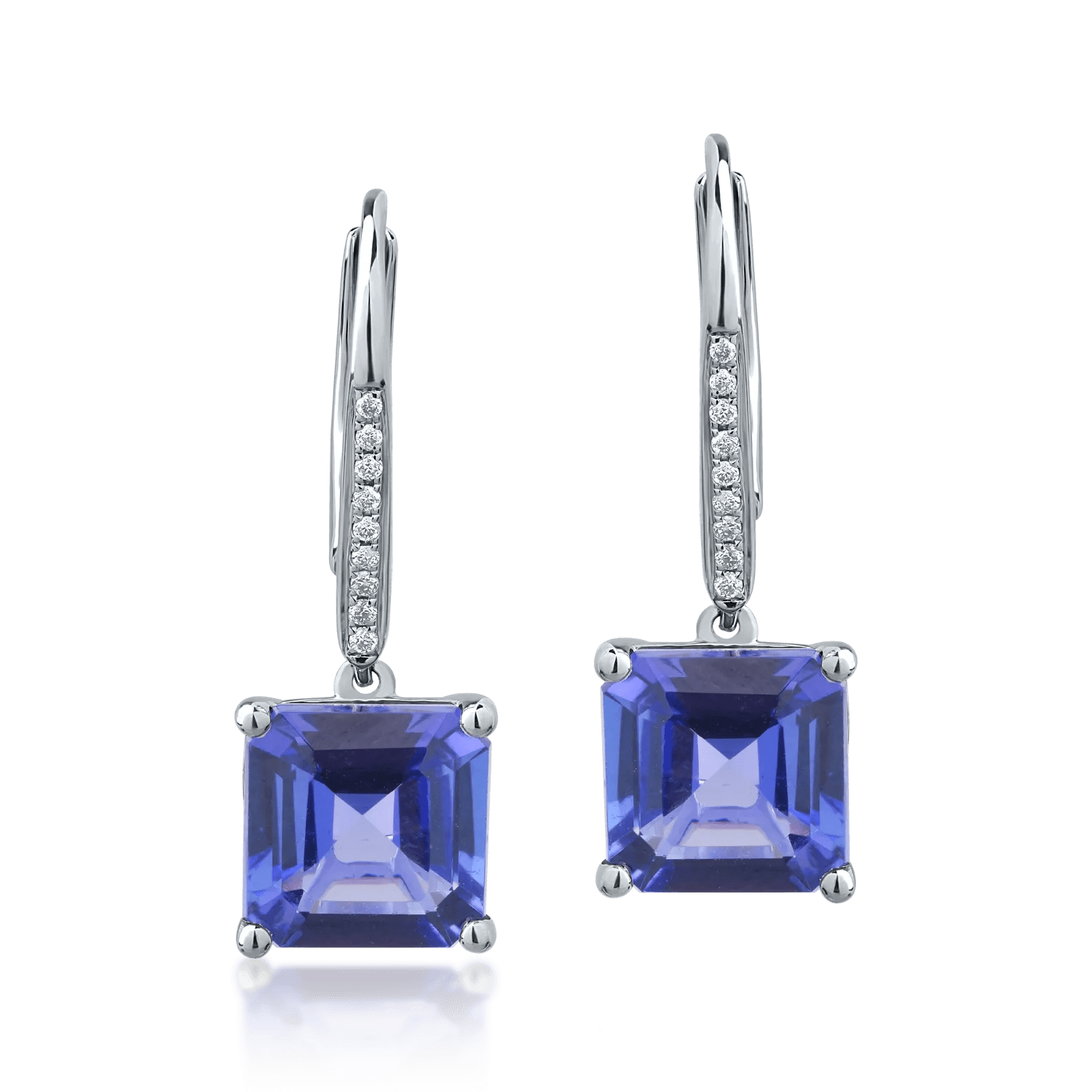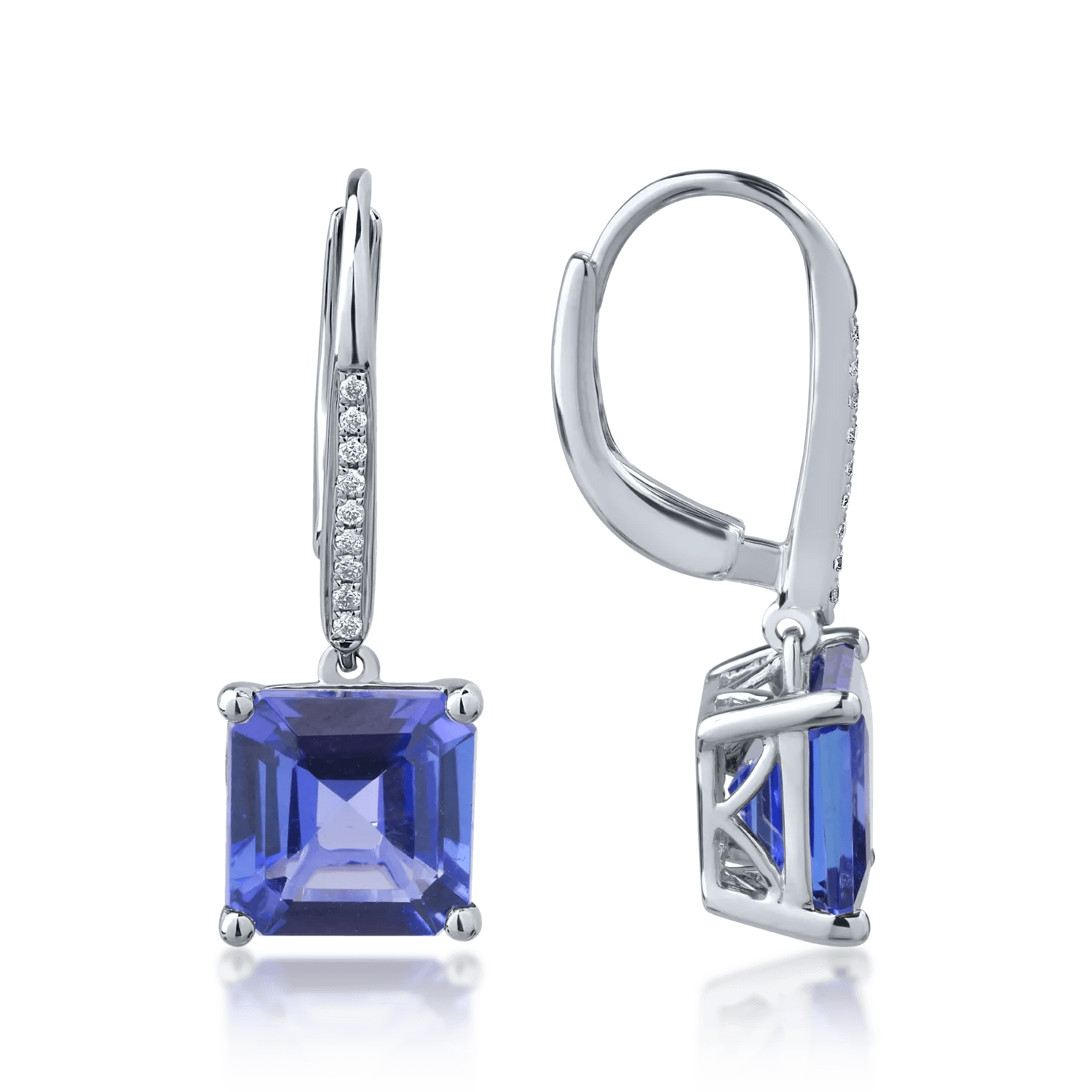 Acești cercei din aur alb captivant îmbină strălucirea tanzanitelor de 5.87ct cu eleganța discretă a diamantelor de 0.07ct. Tanzanitele square scot în evidență nuanțele unice de albastru-violet, creând un impact vizual aparte. Construcția modernă din aur alb subliniază fiecare detaliu al acestor piese rafinate.